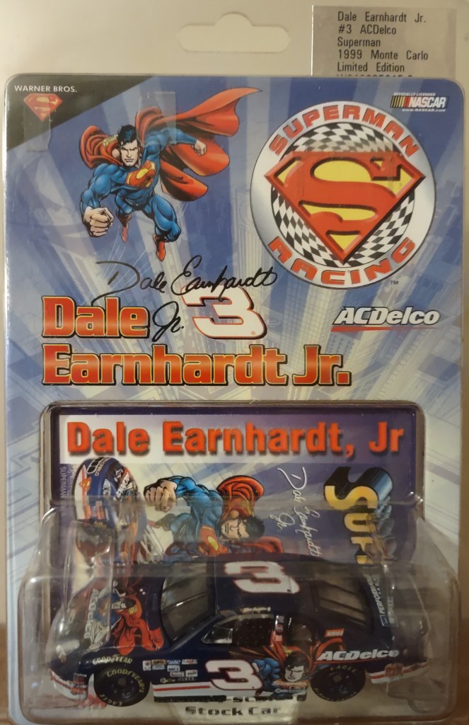 Dale Earnhardt Jr To order items click here and follow instructions. DJR 0011 Wheels High Gear 1999 Card 37 $1.00 DJR 0012 Maxx 10th Anniversary 1998 Card97 $1.25 DJR 0032 Racing Reflections 12″ X 10″ Real Wood Photo Plaque Clock $10.00 DJR 0013 Press Pass 1998 Card 46 $1.50 DJR 0014 Press Pass Premium 1998 Card 12 $2.00 DJR 0033 Racing Reflections 6″ X 12″ Metal License Plate Car & Pit Crew $5.00 DJR 0015 Press Pass 1999 Card 58 Young Guns $0.50 DJR 0016 Press Pass 1999 Card 73 Busch Series Champion 98 $0.50 DJR 0034 Racing Reflections 6″ X 12″ Metal License Plate $5.00 DJR 0017 Press Pass Premium Reflectors 1999 Card 41 $10.00 DJR 0018 Press Pass Premium Badge Of Honor 1999 Card BH2/27 $4.00 DJR 0035 Racing Reflections 8″ X 10″ Photo $3.00 DJR 0019 Upper Deck Road To The Cup 1998 Card 94 Viva Las Vegas $0.50 DJR 0020 Upper Deck Road To The Cup 1998 Card 83 Young Guns $0.50 DJR 0036 Racing Reflections 8″ X 10″ Photo $3.00 DJR 0021 Upper Deck Road To The Cup 1999 Card 90 Checklist $0.50 DJR 0022 Upper Deck Road To The Cup 1999 Card 37 $0.50 DJR 0037 Action 1998 1:64 Scale Die Cast $6.00 DJR 0023 Upper Deck Road To The Cup 1999 Card 67 Fan Favorites $0.75 DJR 0024 Upper Deck Victory Circle 1999 Card 14 $1.00 DJR 0038 Action 1999 1:64 Scale Die Cast Superman $7.50 DJR 0025 Upper Deck Victory Circle 1999 Card 85 Stars Of Tomorrow $1.00 DJR 0026 Upper Deck Victory Circle 1999 Card 50 $0.25 DJR 0039 Action 2000 1:64 Scale Die Cast 96 $7.50 DJR 0027 Upper Deck Victory Circle Speed Zone 1999 Card SZ10 $2.00 DJR 0028 Upper Deck Victory Circle Income Statement 1999 Card IS15 $2.00 DJR 0040 Action 1999 1:24 Scale Die Cast Superman $40.00 DJR 0029 VIP 1998 Card 28 $2.00 DJR 0030 Wheels 1998 card 47 $1.00 DJR 0041 Racing Reflections 1998 Mini-Photo Keychain Front Dale Jr Back Wrangler Monte Carlo $3.00 DJR 0031 Wheels 1999 Card 65 Car and Pit Crew $0.25 DJR 0042 Racing Reflections 1998 Mini-Photo Keychain Front Dale Jr Back AC Delco Monte Carlo $3.00 Share this: Share on X (Opens in new window) X Share on Facebook (Opens in new window) Facebook Like Loading...