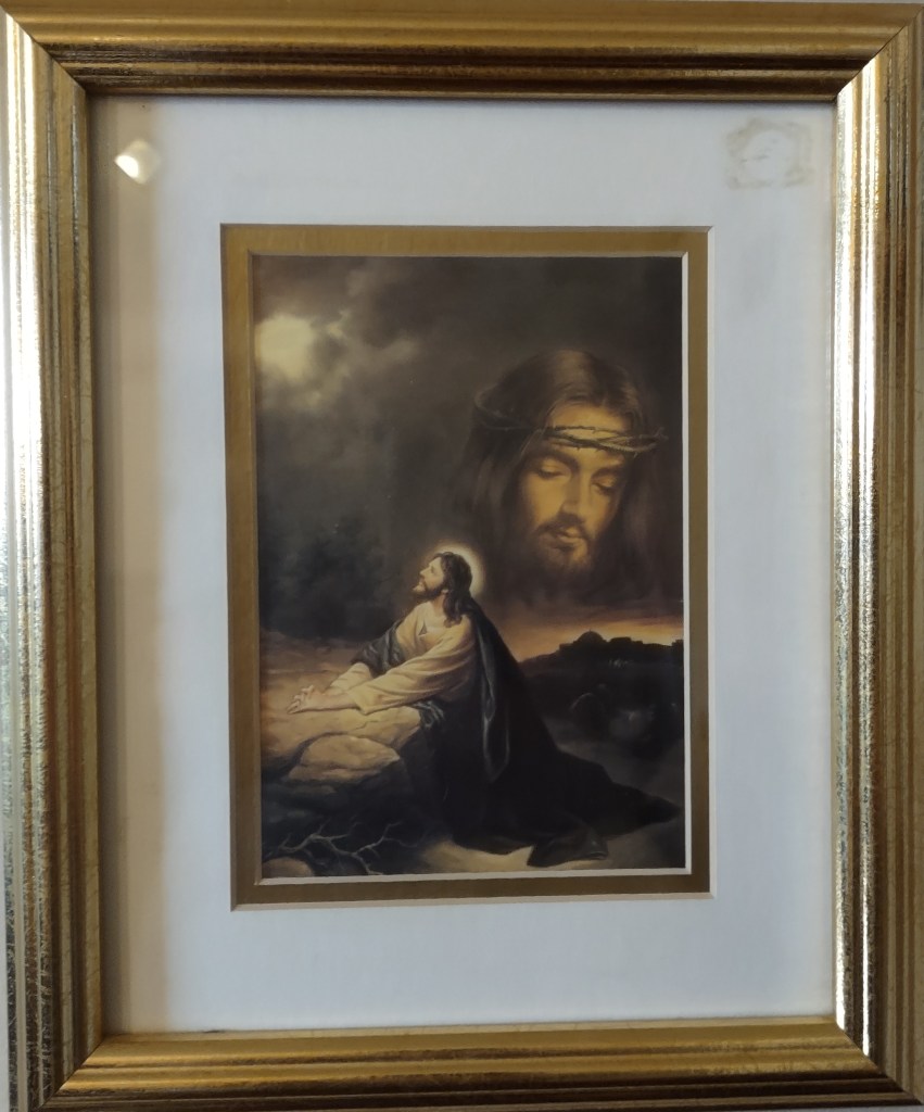 WP 0007 Home & Garden ” Jesus Looking Down On A Man Kneeling” Wood Frame L11.5 X W9.5 $2.50