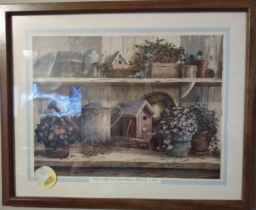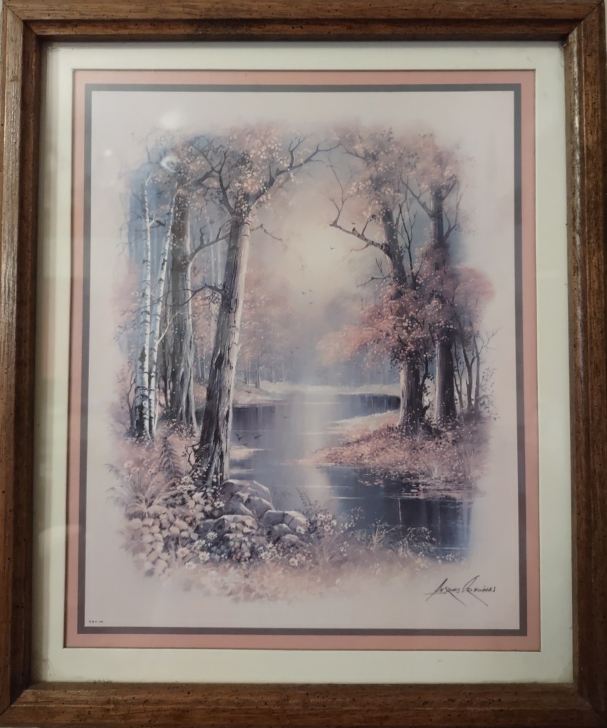 WP 0011 Home & Garden “Creek Running thru Woods” Wood Frame L13 X W11 $2.50
