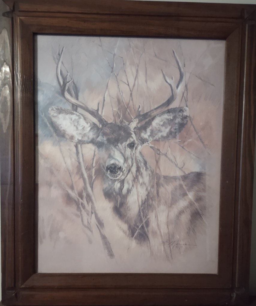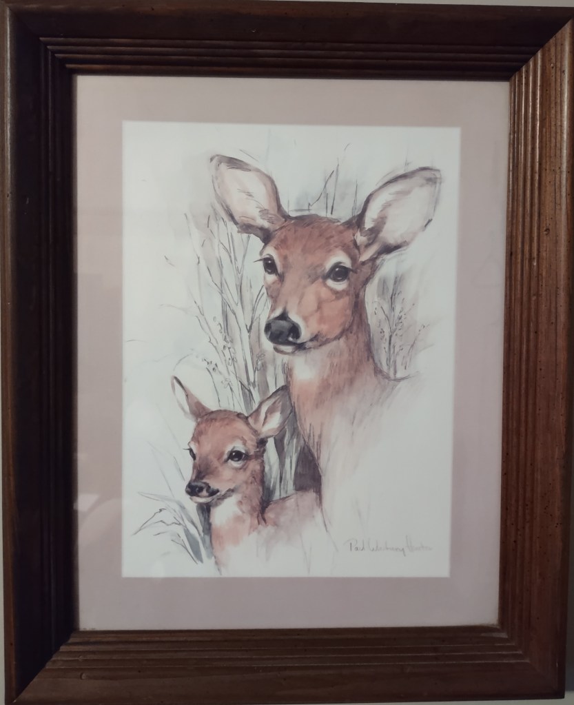 WP 0020 Doe & Fawn Wood Frame L16″ W13″ $2.00