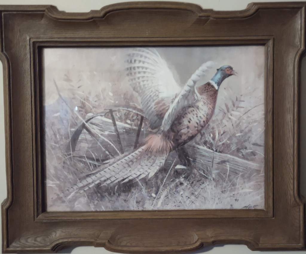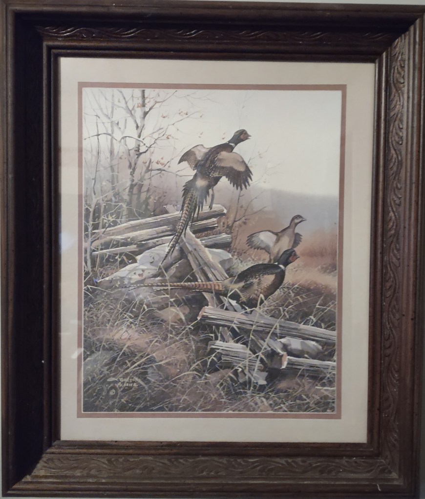 WP 0024 Phesants In Field On Broke Field Wood Frame L20.5″ W17.5″ $3.00