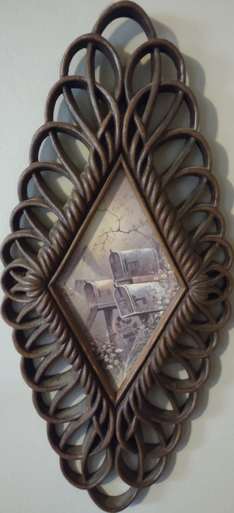 WP 0021 3 Mail Boxes With Barn In Background Wood Frame L17.5″ W13.5″ $2.00