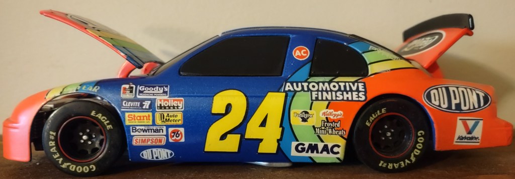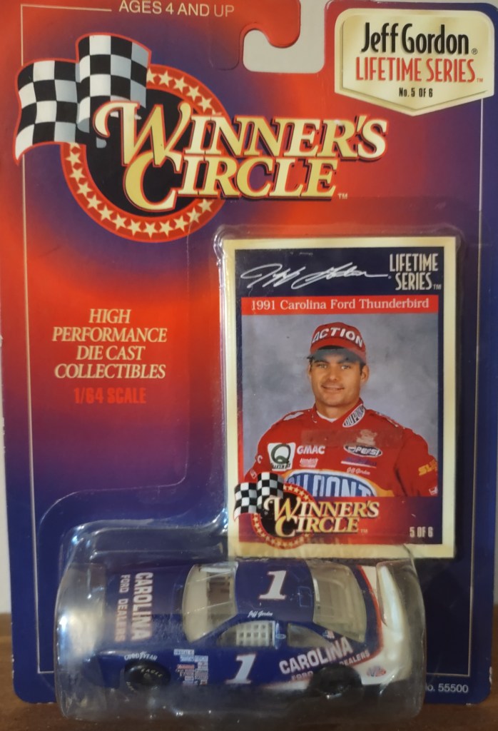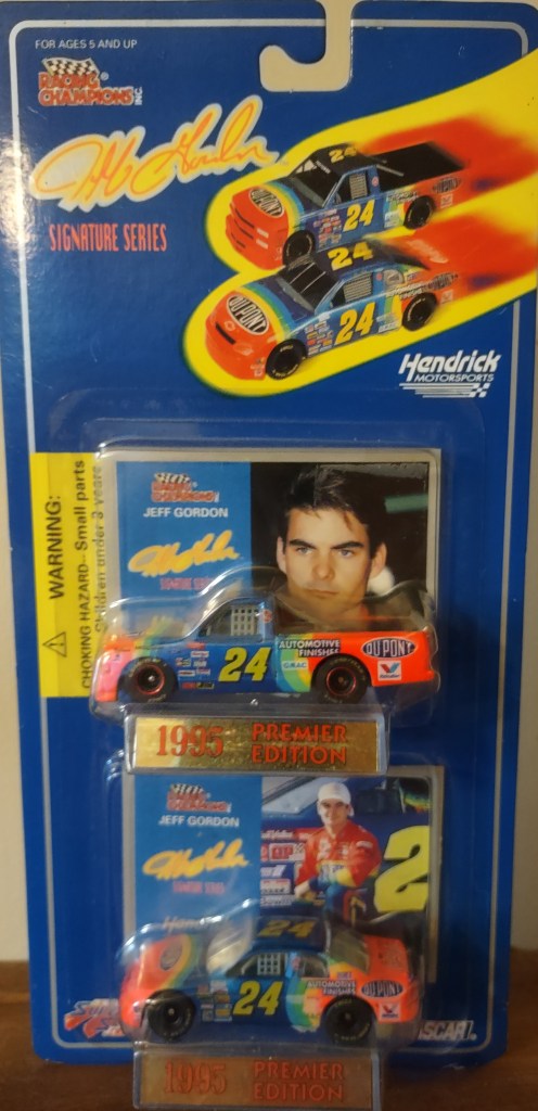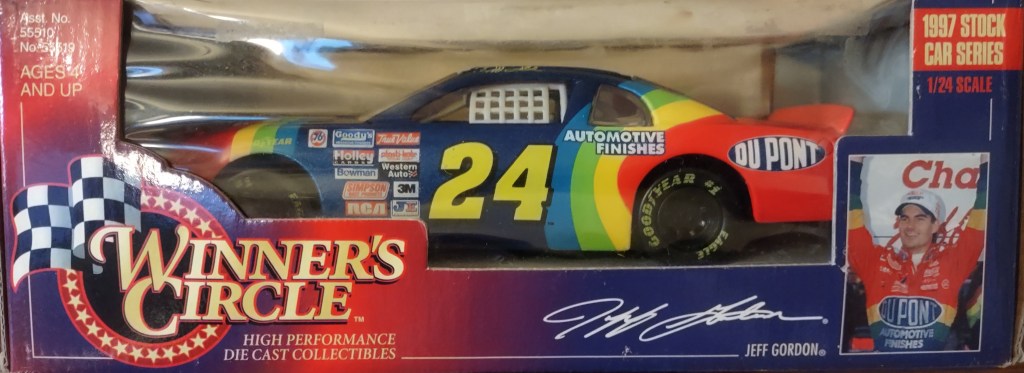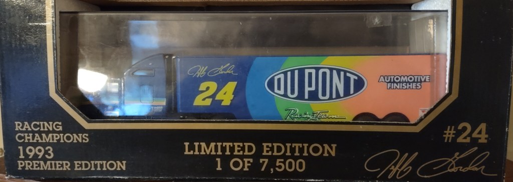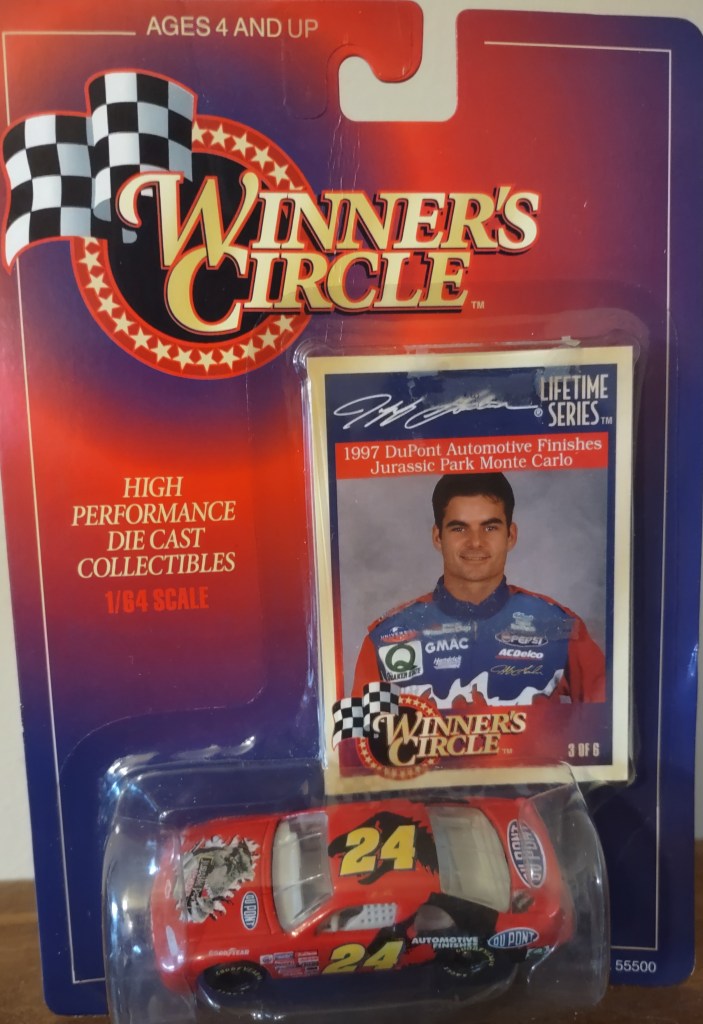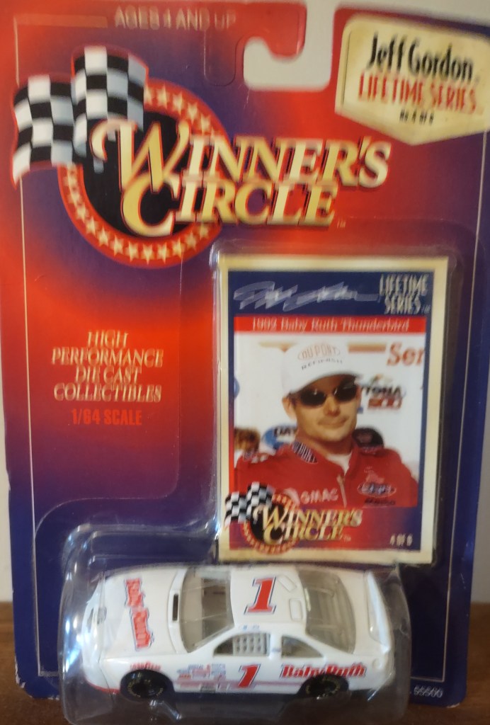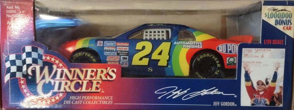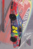 Jeff Gordon To order items click here and follow instructions. JG 0025 Action Packed 1993 Card 173 $1.50 JG 0026 Action Packed 1993 Card 86 $2.00 JG 0198 Racing Champions 1995 1:24 Scale Diecast No Box $10.00 JG 0027 Action Packed 1993 Card 87 $1.00 JG 0028 Action Packed 1993 Card 150 Young Guns $2.00 JG 0199 Racing Champions 1995 1:24 Scale Die Cast $20.00 JG 0029 Action Packed 1993 Card 93 Daytona 93 $2.00 JG 0030 Action Packed 1993 Card 153 Young Guns $2.00 JG 0200 Racing Champions 1997 Preview Box Peeling 1:24 Scale Diecast $10.00 JG 0031 Action Packed 1993 Card 156 The Young Guns Gordon, Labonte, Wallace $3.00 JG 0032 Action Packed 1993 Card 205 Pole Sitters $1.00 JG 0201 Racing Champions Signature Series 1995 1:24 Scale Diecast $30.00 JG 0033 Action Packed Country 1995 Card 22 Motor Racing Outreach Jeff & Brooke $0.25 JG 0034 Action Packed Country 1995 Card 14 Shades $0.25 JG 0202 Racing Champions 1996 Motorsports Traditions Plastic Case 1 Of 2424 On Roof The Kid 1993 ROY/1995 WCC $40.00 JG 0035 Action Packed Stars 1995 Card 24 Out Of The Chute $0.75 JG 0036 Action Packed Credentials 1996 Card 1 Defending Champion $0.25 JG 0203 Racing Champions Signature Series Bank With Stand 1995 1:24 Scale Diecast $25.00 JG 0037 Action Packed Credentials 1996 Card 2 Defending Champion $0.25 JG 0038 Action Packed Credentials Silver Speed 1996 Card 2 Defending Champion $1.50 JKG 0204 Winner’s Circle 1997 1:24 Scale Diecast $20.00 JG 0039 Action Packed Credentials 1996 Card 3 Defending Champion $0.25 JG 0040 Action Packed Credentials 1996 Card 4 Defending Champion $0.25 JG 0205 Winner’s Circle 1997 Million Dollar Date 1:24 Scale Diecast $20.00 JG 0041 Action Packed Credentials 1996 Card 5 Defending Champion $0.25 JG 0042 Action Packed Credentials Leaders Of The Pack 1996 Card 6 of 10 $5.00 JG 00206 Racing Champions Signature Series 1995 1:18 Scale Diecast $25.00 JG 0043 Action Packed Credentials 1996 Card 99 Wives*Camera*Action $0.25 JG 0044 Collectors Choice 1997 Card 101 Speedway Challenge $0.25 JG 0241 Racing Reflections 2002 12 x 10.5 Real Wood Photo Plaque Clock $15.00 JG 0045 Crown Jewel Elite 1996 Card 2 $0.75 JG 0046 Crown Jewel Elite 1996 Card 29 $0.75 JG 0207 Action 1999 DuPont/Superman Gas Pump Bank 1 of 3504 1:16 Scale Diecast $30.00 JG 0047 Finish Line 1993 Card 110 $1.00 JG 0048 Finish Line 1993 Card 14 $0.25 JG 0208 Action Racing Collectables Platinum Series Bank 1995 1:24 Scale Die Cast $75.00 JG 0049 Wheels High Gear 1994 Card 101 $0.75 JG 0050 Wheels High Gear 1994 Card 73 ROY $0.75 JG 0209 Racing Champions Premier Edition 1993 Hauler 1:64 Scale Diecast Cab $20.00 JG 0051 Wheels High Gear Mega Gold 1994 Card MGH5 $5.00 JG 0052 Wheels High Gear 1995 Card 6 $0.75 JG 0210 Racing Champions Signature Series 1995 Hauler with 1:64 Scale Die Cast Cab/Car $15.00 JG 0053 Wheels High Gear 1998 Card 1 $0.75 JG 0054 Wheels High Gear High Groove 1998 Darlington $2.50 JG 0211 Racing Champions 1995 Hauler with Car 1995 Champion 1:64 Scale Diecast Cab/Car $15.00 JG 0055 Wheels High Gear 1999 Card 72 Checklist $0.25 JG 0056 Wheels High Gear Hot Streaks 1995 Card HS 1/6 $3.00 JG 0212 Racing Champions 1995 ROY 93 Hauler 1:87 Scale $7.00 JG 0057 Wheels High Gear Man and Machine 1999 Card 1B/9 $1.00 JG 0058 Images 1995 Card 24 $0.75 JG 0213 Racing Champions 1994 Hauler 1:87 Scale with Micro Car $7.00 JG 0059 Images 1995 Card 100 Checklist $0.25 JG 0060 Images Race Reflections 1995 Card JG4 1470 Of 1995 $5.00 JG 0214 Racing Champions Signature Series 1995 Car & Truck 1:64 Scale Die Cast $10.00 JG 0061 Knights Quest Armor 1996 Card 30 Conqueror $0.75 JG 0062 Maxx 1993 Card 24 $1.25 JG 0215 Winner’s Circle Life Time #3 Of 6 1997 Jurassic Park 1:64 Scale Die Cast $10.00 JG 0063 Maxx 1994 Card 65 Hendrick Motorsports $0.25 JG 0064 Maxx Series One 1995 Card 105 Victory Lane Indianapolis $0.25 JG 0216 Winner’s Circle Lifetime Series 4 of 6 1997 Baby Ruth 1992 1:64 Scale Die Ccast $5.00 JG 0065 Maxx Premier Plus 1995 Card 24 $1.00 JG 0066 Maxx Premier Plus 1995 Card 158 Winston Select Open $0.50 JG 0217 Winner’s Circle Lifetime Series 5 of 6 1997 Carolina Ford Dealers 1991 1:64 Scale Die Cast $6.00 JG 0067 Maxx 1997 Card 24 $0.50 JG 0068 Maxx Flag Firsts 1997 Card FF24 $4.00 JG 0218 Action 1999 Star Wars Episode 1 1:64 Scale Die Cast $8.00 JG 0069 Maxx Rookies Of The Year 1997 Card MR6 $5.00 JG 0070 Maxx 1997 Card 69 $0.25 JG 0219 Chase Authentics Hat One Size Fits All $5.00 JG 0071 Maxx 1998 Card 24 $0.50 JG 0072 Maxx 10th Anniversary 1998 Card 124 $1.00 JG 0220 Chase Authentics Hat One Size Fits All $5.00 JG 0073 Maxx 10th Anniversary 1998 Card 125 $1.00 JG 0074 Maxx 10th Anniversary Champions Past 1998 Card CP1 $4.00 JG 0221 Chase Authentics Hat One Size Fits All $5.00 JG 0075 Maxx 1998 Card 54 $0.25 JG 0076 Maxximum 1998 Card 74 Armor Clad $1.25 JG 0222 Chase Authentics Hat One Size Fits All $5.00 JG 0077 Maxximum First Class 1998 Card F1 $3.00 JG 0078 Maxximum 1998 Card 49 Steel Chariots $0.50 JG 0223 Chase Authentics Hat One Size Fits All $5.00 JG 0079 Maxximum 1998 Card 99 Heat Of Battle $0.50 JG 0080 Pinnacle 1996 Card 95 Common Checklist $0.25 JG 0224 Speedie Beanie Actual Size $3.00 JG 0081 Pinnacle 1996 Card 24 $0.75 JG 0082 Pinnacle 1996 Card 85 Winners $0.75 JG 0225 Fan Fueler Inspirations 3 x 9 Plaque Quote “Only Those Who Are Willing To Go Too Far Ever Really Find Out How Far They Can Go. $4.00 JG 0083 Pinnacle 1996 Card 66 Persistence $0.75 JG 0084 Pinnacle 1996 Card 70 Persistence $0.75 JG 0226 Fan Fueler Inspirations 4 x 4 Quote “Victories Are Not Won in Miles, But In Inches.” $2.00 JG 0085 Pinnacle 1996 Card 68 Persistence $0.75 JG 0086 Pinnacle 1996 Card 69 Persistence $0.75 JG 0227 Shot Glass $2.00 ea JG 0087 Pinnacle 1996 Card 67 Persistence $0.75 JG 0088 Pinnacle 1996 Card 71 Persistence $0.75 JG 0228 Racing Reflections Mini-Photo Keychain Front Jeff Back #24 Car $2.00 JG 0089 Pinnacle 1996 Card 72 Persistence $0.75 JG 0090 Pinnacle 1996 Card 73 Persistence $0.75 JG 0029 
