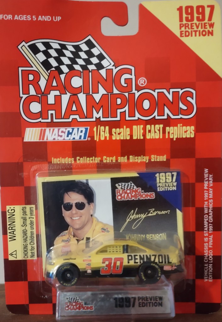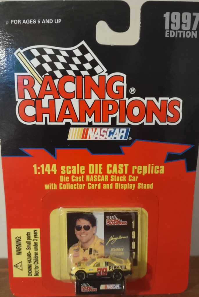 Johnny Benson To order items click here and follow instructions. JB 0009 Action Packed Credentials 1996 Card 54 $0.15 JB 0010 Action Packed Credentials 1996 Card 102 $0.15 JB 0057 Racing Champions Preview 1997 1:64 Scale Die Cast $1.50 JB 0011 Maxx Made In America 1996 Card 30 $0.01 JB 0012 Maxx 1997 Card 30 $0.10 JB 0058 Racing Champions Stock Rods 2002 69 GTO Rotating Wind Tunnel Display Base 3.25 Scale Die Cast $3.00 JB 0013 Maxx 1997 Card 75 $0.01 JB 0014 Maxx 1998 Card 41 $0.01 JB 0059 Racing Champions Stock Rods 2002 69 Firebird 3.25 Die Cast Rotating Wind Tunnel Display $3.00 JB 0015 Maxx 1998 Card 101 Front Runner $0.01 JB 0016 Maxx Team Work 1998 Card TW8 $0.50 JB 0060 racing Champions 1997 Preview 1:24 Scale Die Cast No Box $7.50 JB 0017 Maxx 10th Anniversary 1998 Card 70 $0.05 JB 0018 Pinnacle 1996 Card 30 $0.15 JB 0061 Racing Champions 2002 Chase The Race 1:24 Scale Die Cast $12.50 JB 0019 Pinnacle Winston Cup Collection 1996 Card 30 $0.25 JB 0020 Pinnacle Cut Above 1996 Card 5/15 $1.00 JB 0062 Team Caliber Pit Stop 2002 1:24 Scale Die Cast No Box $15.00 JB 0021 Pinnacle 1996 Card 53 $0.01 JB 0022 Pinnacle 1997 Card 88 Turn 4 $0.02 JB 0063 Racing Champions 2002 Chase The Race 1:24 Scale Die Cast Rotating Wind Tunnel Display Plastic Yellowed $15.00 JB 0024 Press Pass Premium Reflectors 1998 Card 38 $2.00 JB 0025 Press Pass Premium 1998 Card 22 $0.15 JB 0064 Racing Champions 2002 Transporter With Die Cast Car 1:64 Scale No Box $10.00 JA 0026 Press Pass 1998 Card 19 $0.15 JB 0027 Press Pass 1998 Preview Card 59 $0.15 JB 0028 Press Pass 1999 Card 18 $0.15 JB 0029 Press Pass 1999 Card 118 $0.10 JB 0030 Racers Choice 1997 Card 30 $0.10 JB 0031 Racers Choice 1997 Card 65 $0.01 JB 0032 Traks 5th Anniversary 1995 Card 8 $0.15 JB 0033 Traks 5th Anniversary Gold 1995 Card 8 $0.30 JB 0034 Upper Deck Road To The Cup 1997 Card 23 Heroes Of The Hardtop $0.15 JB 0035 Upper Deck Road To The Cup 1997 Card 102 Inside Track $0.15 JB 0036 Upper Deck Road To The Cup Premier Position 1997 Card PP3 $0.75 JB 0037 Upper Deck Road To The Cup 1997 Card 65 Power Plants $0.01 JB 0038 Upper Deck Road To The Cup 1998 Card 26 $0.25 JB 0039 Upper Deck Road To The Cup 1998 Card 55 Taurus Time $0.10 JB 0040 Upper Deck Road To The Cup 1998 Card 79 Young Guns $0.10 JB 0041 Upper Deck Road To The Cup 1998 Card 93 Viva Las Vegas $0.10 JB 0042 Upper Deck Road To The Cup 1999 Card 28 $0.15 JB 0043 Upper Deck Road To The Cup 1999 Card 40 $0.01 JB 0044 Upper Deck Victory Circle 1997 Card 30 $0.15 JB 0045 Upper Deck Victory Circle Generation Excitement 1997 Card GE3 $0.75 JB 0046 Upper Deck Victory Circle 1997 Card 80 Momentum $0.01 JB 0047 Upper Deck Victory Circle 1998 Card 30 $0.25 JB 0048 Upper Deck Victory Circle 1998 Card 127 Freeze Frame $0.25 JB 0049 Upper Deck Victory Circle 1998 Card 75 $0.05 JB 0050 Upper Deck Victory Circle 1999 Card 25 $0.15 JB 0051 Upper Deck Victory Circle 1999 Card 44 $0.01 JB 0052 Wheels 1998 Card 2 $0.15 JB 0053 Wheels 50th Anniversary 1998 card A1/27 $0.50 JB 0054 Wheels 50th Anniversary 1998 Card A16/27 $0.15 JB 0055 Zenith 1996 Card 23 Road Pilots $0.25 JB 0056 Zenith 1996 Card 61 Sunrise $0.10 JB 0065 Racing Champions 1997 1:144 Scale Diecast $2.00 Share this: Share on X (Opens in new window) X Share on Facebook (Opens in new window) Facebook Like Loading...
