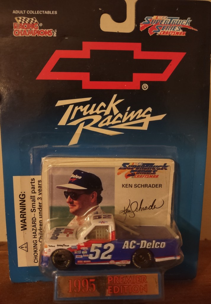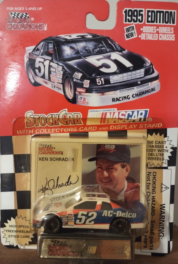 Ken Schrader To order items click here and follow instructions. KS 0014 Action Packed 1993 Card 134 $0.15 KS 0015 Action Packed 1993 Card 187 $0.05 KS 0103 Racing Champions 1995 1:64 Scale Die Cast Plastic Yellowed $1.50 KS 0016 Action Packed 1993 Card 203 Pole Sitters $0.05 KS 0017 Action Packed 1993 Card 135 $0.05 KS 0104 Action 1995 1 Of 24912 1:64 Scale Die Cast $4.00 KS 0018 Action Packed Credentials 1996 Card 36 $0.15 KS 0019 Action Packed 1996 Card 64 Speed Machines $0.05 KS 0105 Racing Champions Series 2 To The Maxx 1995 1:64 Scale Die Cast $3.00 KS 0020 Assets Racing 1995 $5 Phone Card Card 5 $0.25 KS 0021 Classic Mark Martin’s Challengers 1996 Card MC6 $0.25 KS 0106 Racing Champions SuperTruck Series 1995 1:64 Scale Die Cast $3.00 KS 0022 Collectors Choice 1997 Card 112 Speedway Challenge $0.05 KS 0023 Finish Line 1993 Card 134 $0.05 KS 0107 Racing Champions 50th Anniversary NASCAR 1:24 Scale Die Cast $7.50 KS 0024 Finish Line 1993 Card 143 $0.05 KS 0025 Finish Line 1993 Card 74 $0.01 KS 0108 Racing Champions 2002 Chase The Race 1:24 Scale Die Cast $12.50 KS 0026 Finish Line 1994 Card 93 $0.05 KS 0027 Finish Line Silver 1994 Card 116 $0.15 KS 0109 Racing Champions 2002 Chase The Race Halloween 1:24 Scale Die Cast $12.50 KS 0028 Wheels High Gear 1994 Card 173 $0.05 KS 0029 Wheels High Gear 1994 Card 4 $0.05 KS 0110 Revell 1997 1:24 Scale Die Cast $25.00 KS 0030 Wheels High Gear 1995 Card 65 Split Shift $0.05 KS 0031 Wheels High Gear Gold 1995 Card 12 $0.15 KS 0111 Team Caliber Pit Stop 2002 4th Of July 1:24 Scale Die Cast $15.00 KS 0032 Wheels High Gear Gold 1995 Card 74 $0.05 KS 0033 Hi-Tech 1994 Card 53 Track Stats $0.05 KS 0112 Racing Champions 2002 Preview Transporter With 1:64 Scale Die Cast Car $10.00 KS 0034 Knights Quest 1996 Card 13 Armor $0.05 KS 0035 Maxx 1991 Card 25 $0.10 KS 0113 Racing Champions 2002 Transporter With 1:64 Scale Die Cast 4 Of July Car $12.50 KS 0036 Maxx 1993 Card 25 $0.05 KS 0037 Maxx 1991 Card 194 Pit Crew Champions $0.05 KS 0038 Maxx Over The Wall 1995 Card 7 Of 10 $0.50 KS 0039 Maxx 1997 Card 33 $0.05 KS 0040 Maxx 1997 Card 78 $0.01 KS 0041 Maxx 1997 Card 116 Maxx Originals $0.05 KS 0042 Maxx 10th Anniversary 1998 Card 29 $0.10 KS 0043 Maxx 1998 Card 22 $0.05 KS 0044 Maxx 1998 Card 52 $0.01 KS 0045 Maxx 1998 Card 100 Front Runners $0.01 KS 0046 Maxximum 1998 Card 64 Armor Clad $0.15 KS 0047 Pinnacle 1996 Card 25 $0.05 KS 0048 Press Pass 1994 Card 22 $0.05 KS 0049 Press Pass 1994 Card 119 Busch Pole Winner $0.05 KS 0050 Press Pass 1994 Card 142 Art $0.05 KS 0051 Press Pass Premium Reflectors 1998 Card 37 $1.00 KS 0052 Press Pass Premium Flag Chasers 1998 Card FC14/27 $0.25 KS 0053 Press Pass 1999 Card 84 On The Pole $0.05 KS 0054 Press Pass 1999 Card 110 Retro $0.10 KS 0055 Press Pass 1999 Card 10 $0.05 KS 0056 Pro Set 1991 Card 50 $0.10 KS 0057 Pro Set 1991 Card 127 $0.10 KS 0058 Pro Set 1991 Card 51 Rick Hendrick Owner $0.25 KS 0059 Pro Set 1991 Card 61 $0.05 KS 0060 Pro Set 1992 Card 98 $0.10 KS 0061 Pro Set 1992 Card 104 $0.10 KS 0062 Pro Set 1992 Card 165 $0.05 KS 0063 Power 1994 Card 115 $0.01 KS 0064 Racers Choice 1997 Card 33 $0.05 KS 0065 Racers Choice 1997 Card 68 $0.01 KS 0066 Select 1995 Card 27 $0.05 KS 0067 SP Die Cuts 1995 Card 19 Cup Contenders $0.25 KS 0068 Traks 1991 Card 25 $0.25 KS 0069 Traks 1991 Card 127 $0.25 KS 0070 Traks 1992 Card 25 $0.05 KS 0071 Traks 1992 Card 127 $0.05 KS 0072 Traks 1993 Card 47 $0.05 KS 0073 Traks First Run 1993 Card 47 $0.10 KS 0074 Traks 1993 Card 88 $0.01 KS 0075 Traks 1994 Card 131 $0.05 KS 0076 Traks 5th Anniversary 1995 Card 28 $0.05 KS 0077 Traks 5th Anniversary Gold 1995 Card 28 $0.10 KS 0078 Upper Deck Road To The Cup 1996 Card RC100 $0.05 KS 0079 Upper Deck Road To The Cup 1996 Card RC65 Screamin Steel $0.01 KS 0080 Upper Deck 1996 Card 103 Precision Performers $0.01 KS 0081 Upper Deck Road To The Cup 1997 Card 130 Alternators $0.05 KS 0082 Upper Deck Road To The Cup 1997 Card 14 Heroes Of The Hardtop $0.05 KS 0083 Upper Deck Road To The Cup 1997 Card 98 Inside Track $0.05 KS 0084 Upper Deck Road To The Cup 1997 Card 56 Power Plants $0.01 KS 0085 Upper Deck Road To The Cup 1997 Card 114 Haulin Transporter $0.01 KS 0086 Upper Deck Road To The Cup 1998 Card 33 $0.10 KS 0087 Upper Deck Road To The Cup 1999 Card 12 $0.05 KS 0088 Upper Deck Road To The Cup 1999 Card 39 $0.01 KS 0089 Upper Deck Victory Circle 1997 Card 25 $0.05 KS 0090 Upper Deck Victory Circle 1997 Card 75 Momentum $0.01 KS 0091 Upper Deck Victory Circle 1998 Card 33 $0.05 KS 0092 Upper Deck Victory Circle 1998 Card 78 $0.05 KS 0093 Upper Deck Victory Circle 32 Days Of Speed 1998 Card DS25 $0.15 KS 0094 Upper Deck Victory Circle1999 Card 24 $0.05 KS 0095 Upper Deck Victory Circle Income Statement 1999 Card IS9 $0.25 KS 0096 Upper Deck Victory Circle 1999 Card 64 $0.01 KS 0097 Wheels Rookie Thunder 1993 Card 98 Teammates Schrader/Gordon $0.50 KS 0098 Wheels Rookie Thunder 1993 Card 26 1985 Rookie Of The Year $0.01 KS 0099 Wheels 1998 Card 26 $0.05 KS 0100 Wheels 1999 Card 30 $0.05 KS 0101 Zenith 1996 Card 22 Road Pilots $0.10 KS 0102 Zenith 1996 Card 58 $0.10 Share this: Share on X (Opens in new window) X Share on Facebook (Opens in new window) Facebook Like Loading...