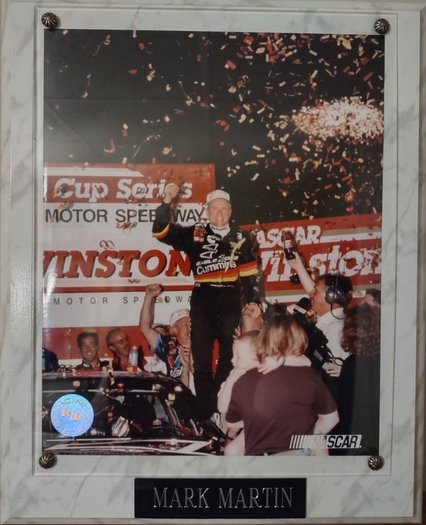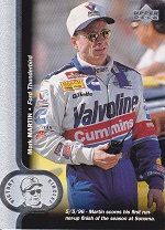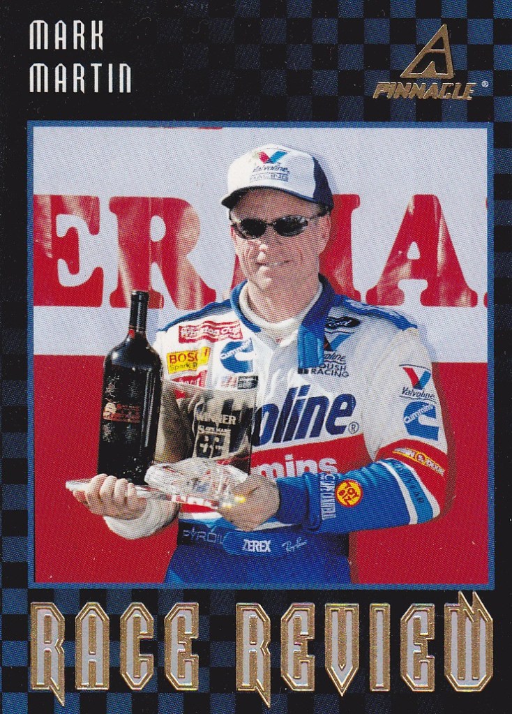 Mark Martin To order items click here and follow instructions. MM 0028 Action Packed 1993 Card 109 $1.50 MM 0029 Action Packed 1993 Card 176 $0.75 MM 0204 Racing Champions 1995 1:24 Scale Die Cast $10.00 MM 0030 Action Packed 1993 Card 110 $0.25 MM 0031 Action Packed Credentials 1996 Card 23 $0.50 MM 0205 Revell 1997 1:24 Scale Die Cast $25.00 MM 0032 Action Packed Credentials 1996 Card 11 On The Mark $0.25 MM 0033 Action Packed Credentials 1996 Card 12 On The Mark $0.25 MM 0206 Racing Champions 1999 Signature Driver Series 1:24 Scale Die Cast $10.00 MM 0034 Action Packed Credentials 1996 Card 13 On The Mark $0.25 MM 0035 Action Packed Credentials 1996 Card 14 On The Mark $0.25 MM 0207 Action/RCCA 2000 1983 Monte Carlo 1 of 6500 1:24 Scale Die Cast Bank Trunk lid is broke $10.00 MM 0036 Action Packed Credentials 1996 Card 15 On The Mark $0.25 MM 0037 Action Packed Credentials 1996 Card 62 Speed Machines $0.25 MM 0208 Action RCCA 2000 1983 Monte Carlo 1 of 6500 1:24 Scale Die Cast Bank $25.00 MM 0038 Collectors Choice 1997 Card 136 Martin/Musgrave Team 3 Roush $0.25 MM 0039 Crown Jewels Ruby Edition 1995 Card 03 $5.00 MM 0209 Action/RCCA 2000 1983 Monte carlo 1 of 6500 1:24 Scale Die Cast Bank $15.00 MM 0040 Crown Jewels Elite 1996 Card 4 $0.50 MM 0041 Finish Line Silver Series 1993 Card 133 $1.50 MM 0042 Finish Line 1993 Card 12 $0.25 MM 0043 Finish Line Silver 1994 Card 7 $1.00 MM 0211 Racing Champions Preview 2000 Transporter with 1:64 Scale Die Cast Car $8.00 MM 0044 Finish Line Silver 1994 Card 126 $1.00 MM 0045 Finish Line Down Home 1994 Card 4-10 $2.00 MM 0212 Action 2000 1983 Monte Carlo 1:64 Scale Die Cast $5.00 MM 0046 Ultra Flair Preview 1996 Card 4/10 $4.00 MM 0047 Wheels High Gear 1994 Card 192 Darlington $0.25 MM 0213 Racing Champions 1996 1:64 Scale Die Cast $2.00 MM 0048 Wheels High Gear 1994 Card 189 Watkins Glen $0.25 MM 0049 Wheels High Gear 1994 Card 190 Michigan $0.25 MM 0214 Racing Champions Preview 1997 1:64 Scale Die Cast $2.00 MM 0050 Wheels High Gear 1994 Card 199 $0.25 MM 0051 Wheels High Gear Day 1 1994 Card 190 Michigan $0.50 MM 0215 Racing Champions 1998 50th Anniversary NASCAR 1:64 Scale Die Cast $2.00 MM 0052 Wheels High Gear Gold 1994 Card 199 Phoenix $0.75 MM 0053 Wheels High Gear Gold 1994 Card 190 Michigan $0.75 MM 0216 Racing Champions 1998 50th Anniversary NASCAR 1:64 Scale Die Cast $2.00 MM 0054 Wheels High Gear Gold 1995 Card 73 $0.50 MM 0055 Wheels High Gear 1999 Card 50 Gator Aid Front Runner Award $0.50 MM 0217 Racing Champions Stock Rods 1998 32 Ford Highboy Issue #92 3.25 Scale Die Cast $4.00 MM 0056 Wheels High Gear 1998 Card 31 $0.25 MM 0057 Wheels High Gear High Groove 1998 Card HG4/9 $2.00 MM 0218 Racing Champions Pit Crew 2000 1:64 Scale Die Cast $8.00 MM 0058 Hi-Tech Brickyard 400 1994 Card 40 Track Stats $0.50 MM 0059 Hi-Tech Brickyard 400 1994 Card 19 Best Of Day 2 $0.25 MM 0219 Racing Reflections Mark in Victory Circle At The Winston 4 Photo Coasters 3.5″ X 3.5″ $4.00 MM 0060 Hi-Tech Brickyard 400 1994 Card 29 Collecting Data $0.25 MM 0061 Images 1995 Card 65 $0.50 MM 0220 Speedie Beanie Photo Actual Size $3.00 MM 0062 Images 1995 Card 88 $0.50 MM 0063 Knight Quest 1996 Card 24 Conqueror $0.50 MM 0221 Racing Reflections 1998 Mini-Photo Keychain Front Mark in Victory Circle The Winston Back #6 Eagle One Car $3.00 MM 0064 Knight Quest 1996 Card 5 Sir Martin $0.50 MM 0065 Maxx 1991 Card 6 $0.50 MM 0222 Racing Reflections 1998 Mini-Photo Keychain Front Mark Back #6 Valvoline Car $3.00 MM 0066 Maxx 1991 Card 171 Race #2 1990 Richmond $0.50 MM 0067 Maxx 1991 Card 189 Race #19 1990 $0.50 MM 0223 Racing Reflections 1999 8 X 10 Photo $4.00 MM 0068 Maxx 1991 Card 195 Race #25 1990 $0.50 MM 0069 Maxx 1991 Card 113 Memorable Moments 1990 Darlington $0.50 MM 0224 Racing Reflections 1999 8 X 10 Photo Mark With Bud Shootout Trophy $4.00 MM 0070 Maxx 1991 Card 158 Memorable Moments 1990 Phoenix $0.10 MM 0071 Maxx 1994 Card 227 Race 20 Michigan 1993 $0.25 MM 0225 Racing Reflections 1999 8 X 10 Photo $4.00 MM 0072 Maxx 1994 Card 226 Race 19 Watkins Glen 1993 $0.25 MM 0073 Maxx 1994 Card 228 Race 21 Bristol 1993 $0.25 MM 0226 Racing Reflections 1999 8 X 10 Photo $4.00 MM 0074 Maxx Series One 1995 Card 6 $0.50 MM 0075 Maxx Series One 1995 Card 125 Mark with IROC Trophy $0.25 MM 0227 Racing Reflections 1999 8 X 10 Photo Mark In Victory Lane At The Winston $4.00 MM 0076 Maxx 1995 Get In The Chase With Club Maxx $0.50 MM 0077 Maxx Premier Plus 1995 Card 6 $1.00 MM 0228 Racing Reflections 1999 8 X 10 Photo $4.00 MM 0078 Maxx Made In America 1996 Card 54 $0.25 MM 0079 Maxx 1997 Card 6 $0.50 MM 0229 Racing Reflections 6 X 12 Metal License Plate #6 Valvoline And Pit Crew $5.00 MM 0080 Maxx 1997 Card 106 Maxx Originals $0.25 MM 0081 Maxx 1997 Card 103 Pace Setters $0.25 MM 0230 Racing Reflections 13.5 X 11 Racing Plaque Mark In Victory Circle At The Winston $6.00 MM 0082 Maxx 1997 Card 51 $0.10 MM 0083 Maxx Chase The Champion 1997 Card C2 $3.00 MM 0231 Mark Martin Fan Pack 1 Large White T 1 #6 Valvoline 1:64 Scale Die Cast 1 Race Day Waver $10.00 MM 0084 Maxx 10th Anniversary 1998 Card 5 $0.75 MM 0085 Maxx 10th Anniversary Maxximum Preview 1998 Card P6 $1.50 MM 0232 KeyChain Mark Martin $3.00 MM 0086 Maxx 1998 Card 6 $0.50 MM 0087 Motorsports Collection 1998 Card 8 $0.25 MM 0233 Ear Rings 10 KT Gold $2.00 MM 0088 Motorsports Collection 1998 Team Hauler $0.25 MM 0089 Maximum 1998 Card 81 Heat Of Battle $0.50 MM 0090 Pinnacle 1996 Card 6 $0.50 MM 0091 Pinnacle 1996 Card 96 Checklist $0.25 MM 0092 Pinnacle 1996 card 41 $0.25 MM 0093 Pinnacle 1997 card 61 Race Review $0.25 MM 0094 Pinnacle Mint 1998 Card 25 Minted Moments $0.25 MM 0095 Press Pass Previews 1993 Card 34 $0.50 MM 0096 Press Pass 1994 Card 54 $0.25 MM 0097 Press Pass 1994 Card 17 $0.50 MM 0098 Press Pass 1994 Card 32 Roush/Martin $0.25 MM 0099 Press Pass 1994 Card 121 Top Ford Team $0.25 MM 0100 Press Pass 1994 Card 141 Art $0.25 MM 0101 Press Pass Checkered Flags 1994 Card CF3/4 $1.00 MM 0102 Press 