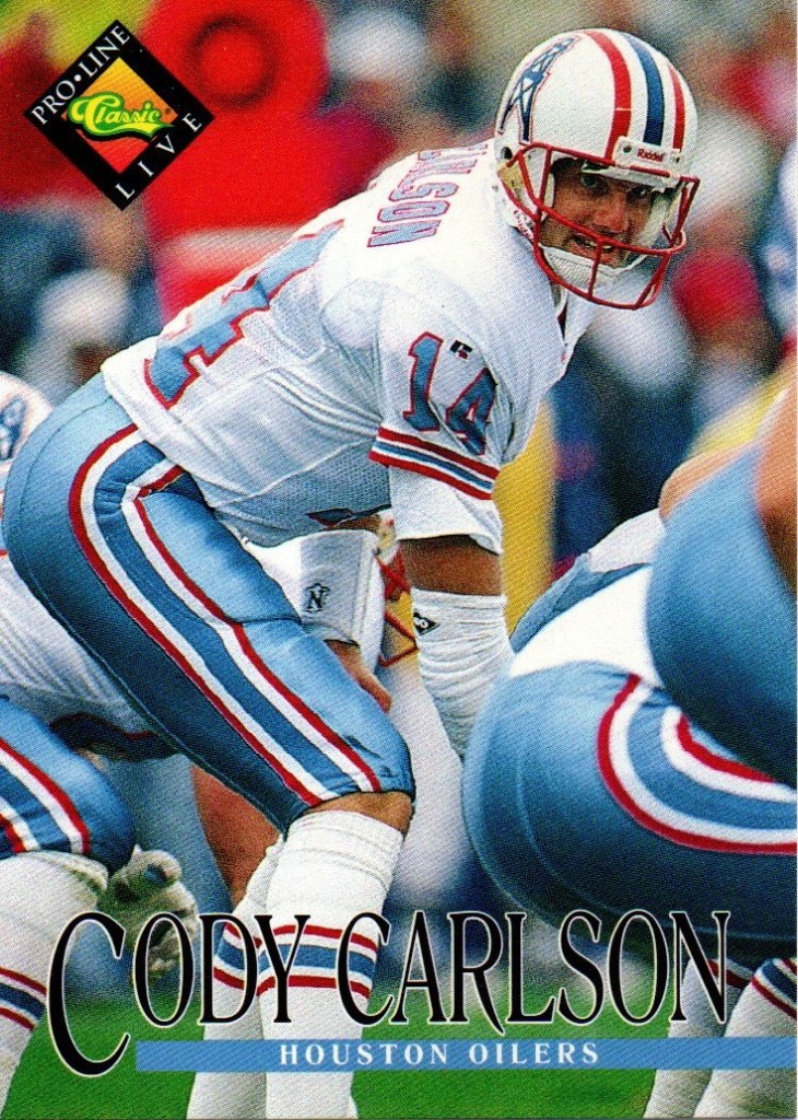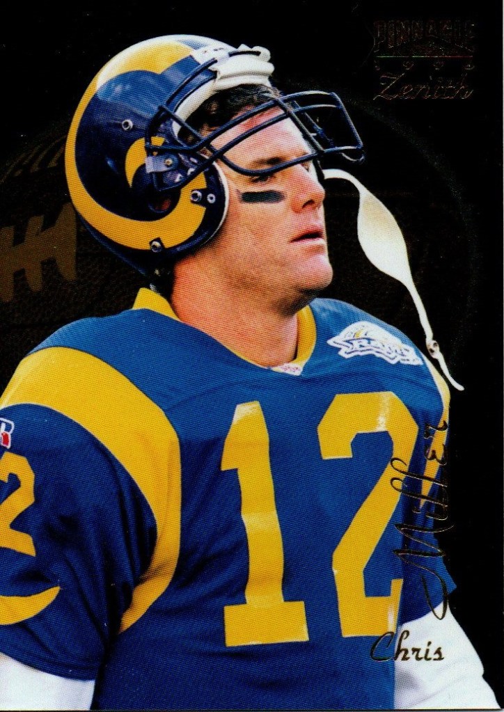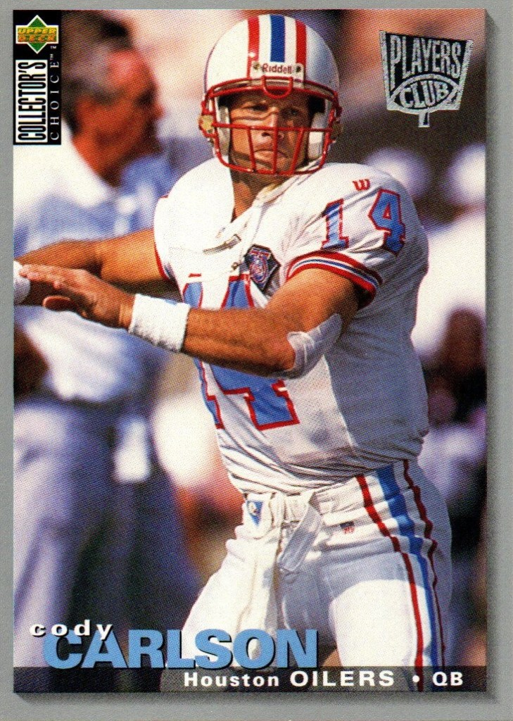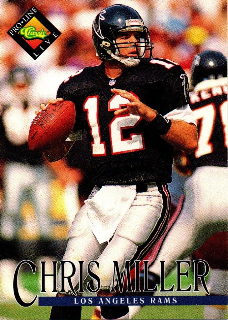 Quaterbacks C To place order Click Here. Cary Conklin CC 0001 Pro Set 1993 Card 449 Team Washington $0.01 CC 0002 Score 1990 Card 645 (1990 Rookie) School Washington Drafted By Washington $0.01 Casey Weldon CW 0001 Classic Draft Picks 1992 Card 31 Team Florida State $0.02 Chad May CM 0001 Absolute 1995 Card 200 (Draft Picks) Team Vikings $0.02 CM 0002 Bowman 1995 Card 315 (Draft Pick Round 4) Team Vikings $0.05 CM 0003 Donruss 1996 Card 69 Team Vikings $0.02 CM 0004 Images Live 1995 Card 110 Team Vikings $0.02 CM 0005 Pacific 1995 Card 130 (College Kansas State) Drafted By Vikings $0.02 CM 0006 Playoff 1995 Card 135 Team Vikings $0.02 CM 0007 Sport Flix 1995 Card 137 (Rookie) Team Vikings $0.02 CM 0008 Zenith 1996 Card Z107 (Rookie) Team Vikings $0.02 CM 0009 Classic NFL Draft 1995 Card 34 (College Kansas State) Drafted By Vikings $0.01 Charlie Conerly CC 0001 Ted Williams 1994 Card 41 Team Giants (Roger Staubacks NFL Football) $0.02 Charlie Ward CW 0001 Fleer 1994 Card 23 of 25 Team Florida State Free Agent (NFL Prospects) $0.25 CW 0002 Pro Line Live 1994 Card 371 Team Florida State Rookie (1993 Heisman Trophy Winner) $0.05 CW 0003 Classic Two Sport Star 1994 Card 82 Team Florida State (Quaterback & Guard) $0.05 CW 0004 Classic NFL Draft 1994 Card 81 Team Florida State $0.05 CW 0005 Classic NFL Draft Gold 1994 Card 81 Team Florida State $0.10 Chris Chandler CC 0001 Absolute 1995 Card 155 Teams Rams & Oilers $0.05 CC 0002 Classic NFL Experience 1996 Card 28 Team Oilers $0.02 CC 0003 Donruss 1996 Card 126 Team Oilers $0.05 CC 0004 Pinnacle Xpress 1997 Pursuit Of Paydirt (Game Rules) $0.15 CC 0005 Power 1993 Card 117 Team Cardinals $0.02 CC 0006 Pro Set 1993 Card 349 Team Cardinals $0.02 CC 0007 Score 1995 Card 81 Teams Rams & Oilers $0.02 CC 0008 SkyBox Impact 1993 Card 264 Team Cardinals $0.02 CC 0009 SP 1995 Card 139 Team Oilers $0.15 CC 0010 Sport Flix 1995 Card 21 Team Rams Signed With Oilers $0.05 CC 0011 UD Choice 1998 Card 293 Team Falcons $0.10 CC 0012 Ultra 1991 Card 259 Team Buccaneers $0.05 CC 0013 Upper Deck 1993 Card 394 Team Cardinals $0.02 Chris Cochrane CC 0001 Wild Card World League 1992 Card 38 Team Ohio Glory $0.01 Chris Miller CM 0001 Absolute 1995 Card 113 Team rams $0.02 CM 0002 Action Packed 1995 Card 89 Team Rams $0.02 CM 0003 Action Packed (Monday Night Football) 1995 Card 48 Team Rams $0.02 CM 0004 Classic NFL Experience 1996 Card 52 Team Rams $0.01 CM 0005 Collectors Choice 1995 Card 161 Team Rams $0.01 CM 0006 Fleer 1990 Card 381 Team Falcons $0.05 CM 0007 Fleer 1991 Card 207 Team Falcons $0.02 CM 0008 Fleer 1994 Card 260 Team Rams $0.01 CM 0009 Images 1994 Card 93 Team Rams $0.05 CM 0010 Images Live 1995 Card 36 Team Rams $0.02 CM 0011 Pacific 1995 Card 397 Team Rams $0.02 CM 0012 Pinnacle 1994 Card 67 Team Falcons (Signed With Rams) $0.02 CM 0013 Playoff Contenders 1994 Card 11 Team Rams $0.02 CM 0014 Playoff Contenders 1995 Card 115 Team Rams $0.02 CM 0015 Pro Line Portraits 1991 Card 95 Team Falcons $0.02 CM 0016 Pro Line Live 1994 Card 75 Team Falcons (Signed With Rams) $0.01 CM 0017 Pro Set 1990 Card 35 Team Falcons $0.02 CM 0018 Pro Set 1993 Card 67 Team Falcons $0.02 CM 0019 Select 1994 Card 181 Team Rams $0.02 CM 0020 SkyBox Impact 1992 Card 211 Team Falcons $0.02 CM 0021 SkyBox Impact 1993 Card 8 Team Falcons $0.02 CM 0022 SkyBox Premium 1994 Card 85 (Prime Mover) Team Rams $0.01 CM 0023 SkyBox Premium 1995 Card 110 Team Rams $0.02 CM 0024 SP 1995 Card 58 Team Rams $0.05 CM 0025 Sportflics 1994 Card 139 Team Falcons (Signed With Rams) $0.02 CM 0026 Sport Flix 1995 Card 77 Team Rams $0.02 CM 0027 Stadium Club 1992 Card 79 Team Falcons $0.05 CM 0028 Topps 1992 Card 156 Team Falcons $0.02 CM 0029 Topps 1993 Card 10 Team Falcons $0.02 CM 0030 Topps 1994 Card 364 Team Rams $0.01 CM 0031 Ultra 1991 Card 146 Team Falcons $0.02 CM 0032 Ultra 1992 Card 12 Team Falcons $0.05 CM 0033 Ultra 1995 Card 278 Team Rams $0.02 CM 0034 Ultra 1996 Card 134 Team Rams $0.02 CM 0035 Upper Deck 1991 Card 193 Team Falcons $0.02 CM 0036 Upper Deck 1994 Card 48 Team Rams $0.02 CM 0037 Wild Card 1992 Card 150 Team Falcons $0.01 CM 0038 Zenith 1996 Card Z54 Team Rams $0.02 Chuck Long CL 0001 Topps 1988 Card 373 Team Lions $0.05 Cody Carlson CC 0001 Absolute 1995 Card 91 Oilers $0.02 CC 0002 Collectors Choice (Players Club) 1995 Card 254 Team Oilers $0.02 CC 0003 Fleer 1993 Card 181 Team Oilers $0.01 CC 0004 Fleer 1994 Card 182 Team Oilers $0.01 CC 0005 Images 1994 Card 112 Team Oilers $0.05 CC 0006 Pacific 1992 Card 440 Team Oilers $0.01 CC 0007 Pinnacle 1994 Card 130 Team Oilers $0.02 CC 0008 Power 1993 Card 114 Team Oilers $0.01 CC 0009 Pro Line Live 1994 Card 52 Team Oilers $0.01 CC 0010 Pro Set 1993 Card 165 Team Oilers $0.01 CC 0011 Score 1991 Card 302 Team Oilers $0.01 CC 0012 SkyBox 1993 Card 126 Team Oilers $0.01 CC 0013 Sportflics 1994 Card 32 Team Oilers $0.02 CC 0014 Stadium Club 1994 Card 50 Team Oilers $0.05 CC 0015 Ultra 1995 Card 121 Team Oilers $0.02 CC 0016 Upper Deck 1993 Card 361 Team Oilers $0.01 CC 0017 Upper Deck 1994 Card 281 Team Oilers $0.02 Craig Erickson CE 0001 Absolute 1995 Card 119 Team Buccaneers (Traded To Colts) $0.02 CE 0002 Action Packed 1995 Card 81 Team Buccaneers (Traded To Colts) $0.02 CE 0003 Action Packed (Monday Night Football) 1995 Card 41 Team Buccaneers (Traded To Colts) $0.02 CE 0004 Collectors Choice 1995 Card 102 Team Buccaneers (Traded To Colts) $0.01 CE 0005 Donruss 1996 Card 192 Team Colts $0.02 CE 0006 Excalibur 1995 Card 72 Team Buccaneers $0.05 CE 0007 Fleer 1994 Card 451 Team Buccaneers $0.01 CE 0008 Images Live 1995 Card 76 Team Colts $0.02 CE 0009 Pacific 1995 Card 345 Team Buccaneers $0.02 CE 0010 Pinnacle 1994 Card 185 Team Buccaneers $0.02 CE 0011 Playoff Contenders 1994 Card 8 Team Buccaneers $0.02 CE 0012 Playoff Contenders 1995 Card 117 Team Colts $0.02 CE 0013 Pro Line Live 1994 Card 148 Team Buccaneers $0.01 CE 0014 Pro Set 1993 Card 424 Team Buccaneers $0.02 CE 0015 Score 1995 Card 93 Team Buccaneers (Traded To Colt