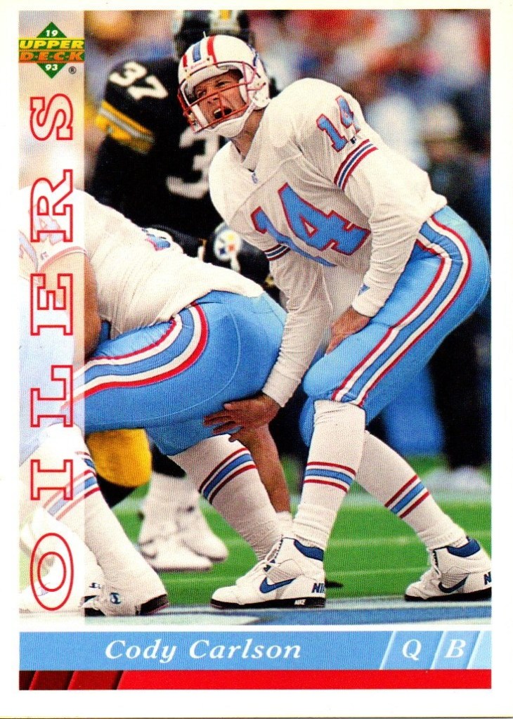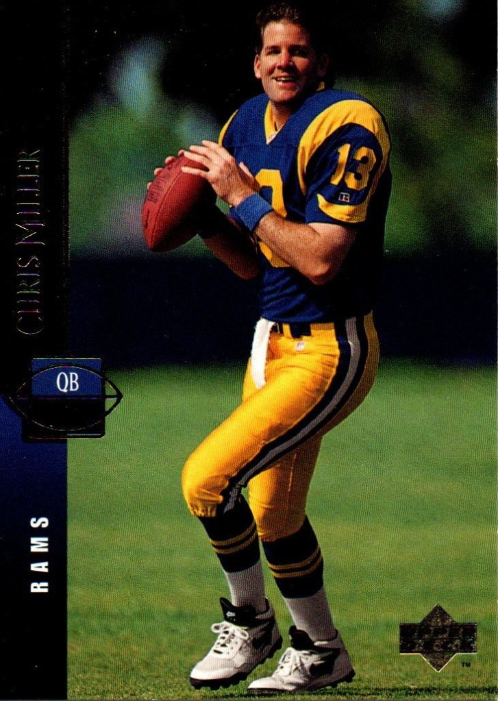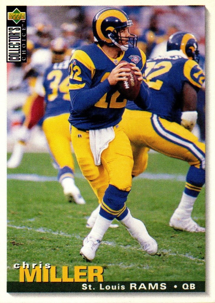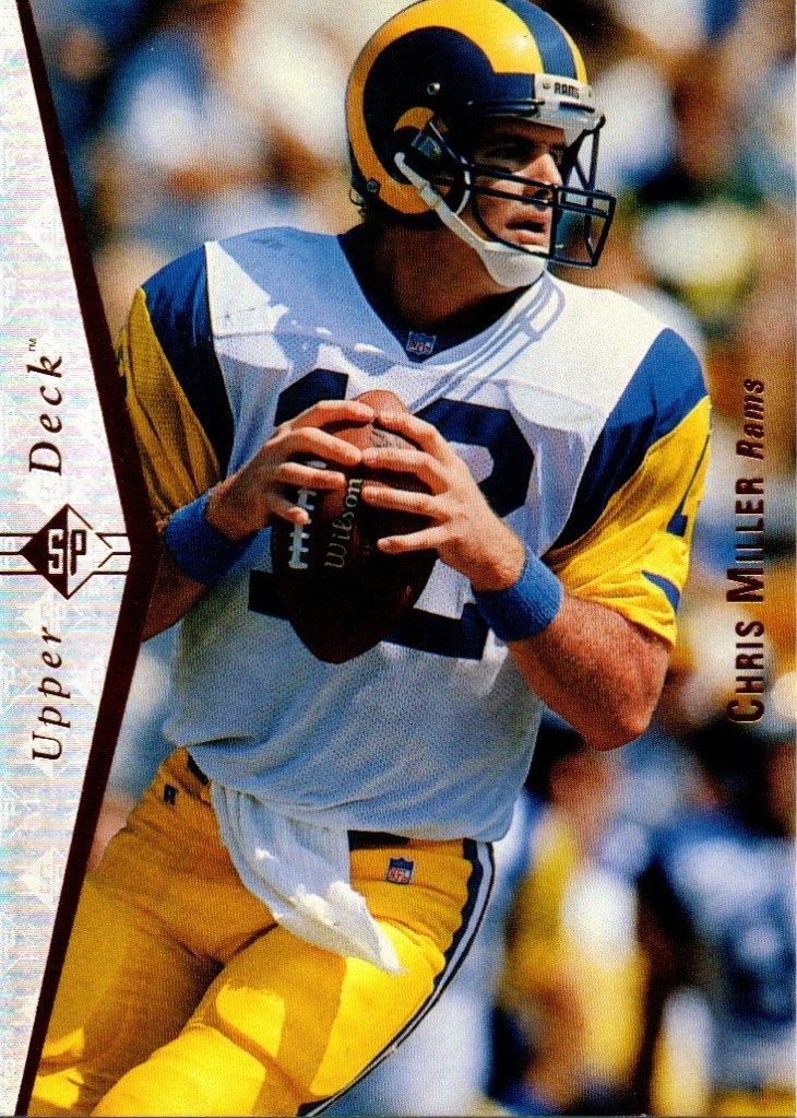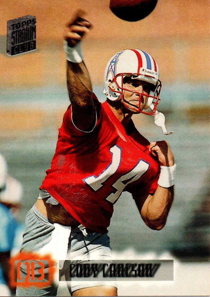 Quaterbacks C To place order Click Here. Cary Conklin CC 0001 Pro Set 1993 Card 449 Team Washington $0.01 CC 0002 Score 1990 Card 645 (1990 Rookie) School Washington Drafted By Washington $0.01 Casey Weldon CW 0001 Classic Draft Picks 1992 Card 31 Team Florida State $0.02 Chad May CM 0001 Absolute 1995 Card 200 (Draft Picks) Team Vikings $0.02 CM 0002 Bowman 1995 Card 315 (Draft Pick Round 4) Team Vikings $0.05 CM 0003 Donruss 1996 Card 69 Team Vikings $0.02 CM 0004 Images Live 1995 Card 110 Team Vikings $0.02 CM 0005 Pacific 1995 Card 130 (College Kansas State) Drafted By Vikings $0.02 CM 0006 Playoff 1995 Card 135 Team Vikings $0.02 CM 0007 Sport Flix 1995 Card 137 (Rookie) Team Vikings $0.02 CM 0008 Zenith 1996 Card Z107 (Rookie) Team Vikings $0.02 CM 0009 Classic NFL Draft 1995 Card 34 (College Kansas State) Drafted By Vikings $0.01 Charlie Conerly CC 0001 Ted Williams 1994 Card 41 Team Giants (Roger Staubacks NFL Football) $0.02 Charlie Ward CW 0001 Fleer 1994 Card 23 of 25 Team Florida State Free Agent (NFL Prospects) $0.25 CW 0002 Pro Line Live 1994 Card 371 Team Florida State Rookie (1993 Heisman Trophy Winner) $0.05 CW 0003 Classic Two Sport Star 1994 Card 82 Team Florida State (Quaterback & Guard) $0.05 CW 0004 Classic NFL Draft 1994 Card 81 Team Florida State $0.05 CW 0005 Classic NFL Draft Gold 1994 Card 81 Team Florida State $0.10 Chris Chandler CC 0001 Absolute 1995 Card 155 Teams Rams & Oilers $0.05 CC 0002 Classic NFL Experience 1996 Card 28 Team Oilers $0.02 CC 0003 Donruss 1996 Card 126 Team Oilers $0.05 CC 0004 Pinnacle Xpress 1997 Pursuit Of Paydirt (Game Rules) $0.15 CC 0005 Power 1993 Card 117 Team Cardinals $0.02 CC 0006 Pro Set 1993 Card 349 Team Cardinals $0.02 CC 0007 Score 1995 Card 81 Teams Rams & Oilers $0.02 CC 0008 SkyBox Impact 1993 Card 264 Team Cardinals $0.02 CC 0009 SP 1995 Card 139 Team Oilers $0.15 CC 0010 Sport Flix 1995 Card 21 Team Rams Signed With Oilers $0.05 CC 0011 UD Choice 1998 Card 293 Team Falcons $0.10 CC 0012 Ultra 1991 Card 259 Team Buccaneers $0.05 CC 0013 Upper Deck 1993 Card 394 Team Cardinals $0.02 Chris Cochrane CC 0001 Wild Card World League 1992 Card 38 Team Ohio Glory $0.01 Chris Miller CM 0001 Absolute 1995 Card 113 Team rams $0.02 CM 0002 Action Packed 1995 Card 89 Team Rams $0.02 CM 0003 Action Packed (Monday Night Football) 1995 Card 48 Team Rams $0.02 CM 0004 Classic NFL Experience 1996 Card 52 Team Rams $0.01 CM 0005 Collectors Choice 1995 Card 161 Team Rams $0.01 CM 0006 Fleer 1990 Card 381 Team Falcons $0.05 CM 0007 Fleer 1991 Card 207 Team Falcons $0.02 CM 0008 Fleer 1994 Card 260 Team Rams $0.01 CM 0009 Images 1994 Card 93 Team Rams $0.05 CM 0010 Images Live 1995 Card 36 Team Rams $0.02 CM 0011 Pacific 1995 Card 397 Team Rams $0.02 CM 0012 Pinnacle 1994 Card 67 Team Falcons (Signed With Rams) $0.02 CM 0013 Playoff Contenders 1994 Card 11 Team Rams $0.02 CM 0014 Playoff Contenders 1995 Card 115 Team Rams $0.02 CM 0015 Pro Line Portraits 1991 Card 95 Team Falcons $0.02 CM 0016 Pro Line Live 1994 Card 75 Team Falcons (Signed With Rams) $0.01 CM 0017 Pro Set 1990 Card 35 Team Falcons $0.02 CM 0018 Pro Set 1993 Card 67 Team Falcons $0.02 CM 0019 Select 1994 Card 181 Team Rams $0.02 CM 0020 SkyBox Impact 1992 Card 211 Team Falcons $0.02 CM 0021 SkyBox Impact 1993 Card 8 Team Falcons $0.02 CM 0022 SkyBox Premium 1994 Card 85 (Prime Mover) Team Rams $0.01 CM 0023 SkyBox Premium 1995 Card 110 Team Rams $0.02 CM 0024 SP 1995 Card 58 Team Rams $0.05 CM 0025 Sportflics 1994 Card 139 Team Falcons (Signed With Rams) $0.02 CM 0026 Sport Flix 1995 Card 77 Team Rams $0.02 CM 0027 Stadium Club 1992 Card 79 Team Falcons $0.05 CM 0028 Topps 1992 Card 156 Team Falcons $0.02 CM 0029 Topps 1993 Card 10 Team Falcons $0.02 CM 0030 Topps 1994 Card 364 Team Rams $0.01 CM 0031 Ultra 1991 Card 146 Team Falcons $0.02 CM 0032 Ultra 1992 Card 12 Team Falcons $0.05 CM 0033 Ultra 1995 Card 278 Team Rams $0.02 CM 0034 Ultra 1996 Card 134 Team Rams $0.02 CM 0035 Upper Deck 1991 Card 193 Team Falcons $0.02 CM 0036 Upper Deck 1994 Card 48 Team Rams $0.02 CM 0037 Wild Card 1992 Card 150 Team Falcons $0.01 CM 0038 Zenith 1996 Card Z54 Team Rams $0.02 Chuck Long CL 0001 Topps 1988 Card 373 Team Lions $0.05 Cody Carlson CC 0001 Absolute 1995 Card 91 Oilers $0.02 CC 0002 Collectors Choice (Players Club) 1995 Card 254 Team Oilers $0.02 CC 0003 Fleer 1993 Card 181 Team Oilers $0.01 CC 0004 Fleer 1994 Card 182 Team Oilers $0.01 CC 0005 Images 1994 Card 112 Team Oilers $0.05 CC 0006 Pacific 1992 Card 440 Team Oilers $0.01 CC 0007 Pinnacle 1994 Card 130 Team Oilers $0.02 CC 0008 Power 1993 Card 114 Team Oilers $0.01 CC 0009 Pro Line Live 1994 Card 52 Team Oilers $0.01 CC 0010 Pro Set 1993 Card 165 Team Oilers $0.01 CC 0011 Score 1991 Card 302 Team Oilers $0.01 CC 0012 SkyBox 1993 Card 126 Team Oilers $0.01 CC 0013 Sportflics 1994 Card 32 Team Oilers $0.02 CC 0014 Stadium Club 1994 Card 50 Team Oilers $0.05 CC 0015 Ultra 1995 Card 121 Team Oilers $0.02 CC 0016 Upper Deck 1993 Card 361 Team Oilers $0.01 CC 0017 Upper Deck 1994 Card 281 Team Oilers $0.02 Craig Erickson CE 0001 Absolute 1995 Card 119 Team Buccaneers (Traded To Colts) $0.02 CE 0002 Action Packed 1995 Card 81 Team Buccaneers (Traded To Colts) $0.02 CE 0003 Action Packed (Monday Night Football) 1995 Card 41 Team Buccaneers (Traded To Colts) $0.02 CE 0004 Collectors Choice 1995 Card 102 Team Buccaneers (Traded To Colts) $0.01 CE 0005 Donruss 1996 Card 192 Team Colts $0.02 CE 0006 Excalibur 1995 Card 72 Team Buccaneers $0.05 CE 0007 Fleer 1994 Card 451 Team Buccaneers $0.01 CE 0008 Images Live 1995 Card 76 Team Colts $0.02 CE 0009 Pacific 1995 Card 345 Team Buccaneers $0.02 CE 0010 Pinnacle 1994 Card 185 Team Buccaneers $0.02 CE 0011 Playoff Contenders 1994 Card 8 Team Buccaneers $0.02 CE 0012 Playoff Contenders 1995 Card 117 Team Colts $0.02 CE 0013 Pro Line Live 1994 Card 148 Team Buccaneers $0.01 CE 0014 Pro Set 1993 Card 424 Team Buccaneers $0.02 CE 0015 Score 1995 Card 93 Team Buccaneers (Traded To Colt