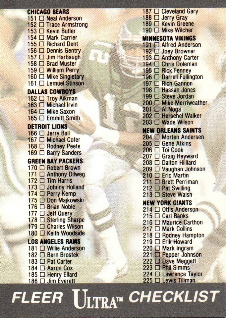 Quaterbacks R To place order Click Here. Randall Cunningham RC 0001 Absolute 1995 Card 7 Team eagles $0.15 RC 0002 Action Packed (Quaterback Challenge) 1994 Card FA4 Team Eagles $0.25 RC 0003 Action Packed 1995 Card 83 Team Eagles $0.20 RC 0004 Action Packed Monday Night Football 1995 Card 64 Team Eagles $0.05 RC 0005 Action Packed Monday Night Football 1995 Card 117 Monday Night Classic Team Eagles $0.05 RC 0006 Classic NFL Experience 1995 Card 76 Team Eagles $0.05 RC 0007 Collectors Choice Silver 1994 Card 137 Team Eagles $0.20 RC 0008 Collectors Choice 1995 Card 124 Team Eagles $0.05 RC 0009 Collectors Choice 1994 Card 137 Team Eagles $0.05 RC 0010 Finest 1995 Card 130 Team Eagles $0.50 RC 0011 Fleer 1990 Card 82B Team Eagles $0.05 RC 0012 Fleer 1991 Card 326 Team Eagles $0.05 RC 0013 Fleer 1991 Card 409 League Leaders Team Eagles $0.02 RC 0014 Fleer 1994 Card 369 Team Eagles $0.05 RC 0015 Images 1994 Card 9 Team Eagles $0.25 RC 0016 Images Live 1995 Card 19 Team Eagles $0.15 RC 0017 Pacific 1995 Card 329 Team Eagles $0.10 RC 0018 Pinnacle 1994 Card 91 Team Eagles $0.15 RC 0019 Playoff Contenders 1994 Card 29 Team Eagles $0.15 RC 0020 Playoff Contenders 1995 Card 104 Team Eagles $0.15 RC 0021 Power 1993 Card 112 Team Eagles $0.05 RC 0022 Pro Line Portraits 1991 Card 77 Team Eagles $0.05 RC 0023 Pro Line Profiles 1992 Card 471 College UNLV Drafted By Eagles $0.02 RC 0024 Pro Line Profiles 1992 Card 473 Team Eagles $0.02 RC 0025 Pro Line Live 1994 Card 114 Team Eagles $0.05 RC 0026 Pro Set 1990 Card 247 Team Eagles $0.05 RC 0027 Pro Set 1990 Card 386A (1990 Pro Bowl) Team Eagles $0.20 RC 0028 Pro Set 1993 Card 334 Team Eagles $0.05 RC 0029 Score 1995 Card 97 Team Eagles $0.05 RC 0030 Select 1994 Card 18 Team Eagles $0.15 RC 0031 SkyBox Impact 1992 Card 200 Team Eagles $0.05 RC 0032 SkyBox Impact 1993 Card 246 Team Eagles $0.05 RC 0033 SkyBox Impact 1995 Card 109 Team Eagles $0.05 RC 0034 SkyBox Premium 1994 Card 121 Team Eagles $0.10 RC 0035 SkyBox Premium 1995 Card 99 Team Eagles $0.15 RC 0036 SP 1995 Card 83 Team Eagles $0.25 RC 0037 Sportflics 1994 Card 11 Team Eagles $0.10 RC 0038 SportFlix 1995 Card 162 Game Winners Team Eagles $0.05 RC 0039 SportFlix 1995 Card 71 Team Eagles $0.10 RC 0040 Stadium Club 1994 Card 238 Team Eagles $0.15 RC 0041 Topps 1995 Card 155 Team Eagles $0.10 RC 0042 Topps 1995 Card 39 (3000 Yard Club) Team Eagles $0.10 RC 0043 Ultra 1991 Card 230 Team Eagles $0.05 RC 0044 Cunningham-Smith Ultra 1991 Card 299 Checklist $0.02 RC 0045 Ultra 1995 Card 245 Team Eagles $0.15 RC 0046 Ultra 1998 Card 332 Team Vikings $0.25 RC 0047 Upper Deck 1994 Card 322 Team Eagles $0.15 Rich Gannon RG 0001 Action Packed 1992 Card 153 Team Vikings $0.20 RG 0002 Fleer 1990 Card 99 Team Vikings $0.50 RG 0003 Fleer 1991 Card 282 Team Vikings $0.05 RG 0004 Playoff 1993 Card 110 Team Vikings $0.15 RG 0005 Power 1993 Card 16 Team Vikings $0.05 RG 0006 Pro Set 1990 Card 568 Team Vikings $0.50 RG 0007 SkyBox Impact 1993 card 190 Team Vikings $0.05 RG 0008 Stadium Club 1992 Card 19 Team Vikings $0.10 RG 0009 Topps 1992 Card 159 Team Vikings $0.05 RG 0010 Ultra 1991 Card 197 Team Vikings $0.05 RG 0011 Wild Card 1992 Card 62 Team Vikings $0.05 Rick Mirer RM 0001 Absolute 1995 Card 81 Team Seahawks $0.05 RM 0002 Action Packed 1995 Card 9 Team Seahawks $0.05 RM 0003 Action Packed Monday Night Football 1995 Card 68 Team Seahawks $0.05 RM 0004 Bowman 1994 Card 235 Team Seahawks $0.25 RM 0005 Classic NFL Experience 1995 Card 100 Team Seahawks $0.02 RM 0006 Classic NFL Experience 1996 Card 50 Team Seahawks $0.02 RM 0007 Collectors Choice 1995 Card 64 Team Seahawks $0.02 RM 0008 Donruss 1996 Card 95 Team Seahawks $0.05 RM 0009 Fleer 1994 Card 439 Team Seahawks $0.05 RM 0010 Fleer Award Winner 1994 Card 2-5 AFC Offensive Rookie Of The Year Team Seahawks $0.10 RM 0011 Fleer Pro Vision 1994 Card 3-9 Team Seahawks $0.10 RM 0012 Images 1994 Card 91 Team Seahawks $0.25 RM 0013 Images All Pro Prospect 1994 Card A14 Team Seahawks $1.50 RM 0014 Images Live 1995 Card 20 Team Seahawks $0.05 RM 0015 Pacific 1995 Card 363 Team Seahawks $0.05 RM 0016 Pinnacle 1994 Card 104 Team Seahawks $0.15 RM 0017 Pinnacle 1996 Card 74 Team Seahawks $0.05 RM 0018 Pinnacle Xpress 1997 Card 69 Team Bears $0.05 RM 0019 Playoff Contenders 1994 Card 49 Team Seahawks $0.15 RM 0020 Playoff Contenders 1995 Card 3 Team Seahawks $0.05 RM 0021 Playoff Trophy Contenders 1996 Card 74 Team Seahawks $0.05 RM 0022 Pro Line Live 1994 Card 140 Team Seahawks $0.05 RM 0023 Pro Set 1993 Card 411 Team Seahawks $0.05 RM 0024 Mirer-Montana Pro Set College Connection 1993 Card CC8 $2.50 RM 0025 Pro Set Rookie Quaterback 1993 Card RQ2 Team Seahawks $0.20 RM 0026 Score 1995 Card 51 Team Seahawks $0.02 RM 0027 Score 1995 Card 232 Team Seahawks $0.02 RM 0028 Select 1994 Card 20 Team Seahawks $0.15 RM 0029 SkyBox Impact 1993 Card 362 Impact Rookie College Notre Dame Drafted By Seahawks $0.05 RM 0030 SkyBox Impact 1995 Card 139 Team Seahawks $0.02 RM 0031 SkyBox Impact 1996 Card 137 Team Seahawks $0.05 RM 0032 SkyBox Premium 1994 Card 146 Team Seahawks $0.10 RM 0033 SkyBox Premium 1995 Card 126 Team Seahawks $0.05 RM 0034 SP 1995 Card 196 Team Seahawks $0.15 RM 0035 Sportflics 1994 Card 115 Team Seahawks $0.05 RM 0036 sportFlix 1995 Card 99 Team Seahawks $0.05 RM 0037 SportFlix 1995 Card 166 Game Winners Team Seahawks $0.05 RM 0038 Stadium Club 1994 Card 188 Great Expectations Team Seahawks $0.15 RM 0039 Stadium Club 1994 Card 620 Team Seahawks $0.15 RM 0040 Topps 1994 Card 480 Team Seahawks $0.05 RM 0041 Topps 1995 Card 199 Team Seahawks $0.05 RM 0042 Ultra Award Winner 1994 Card 2-5 Team Seahawks $0.20 RM 0043 Ultra 1994 Card 5 Rookie Of The Year Team Seahawks $0.20 RM 0044 Ultra 1994 Card 3 Rookie Of The Year Team Seahawks $0.20 RM 0045 Ultra 1994 Card 4 Rookie Of The Year Team Seahawks $0.20 RM 0046 Ultra 1994 Card 6 Rookie Of The Year Team Seahawks $0.20 RM 0047 Ultra 1994 Card 7 Rookie Of The Year Team Seahawks $0.20 RM 0048 Ultra 1994 Card 8 Rookie Of 
