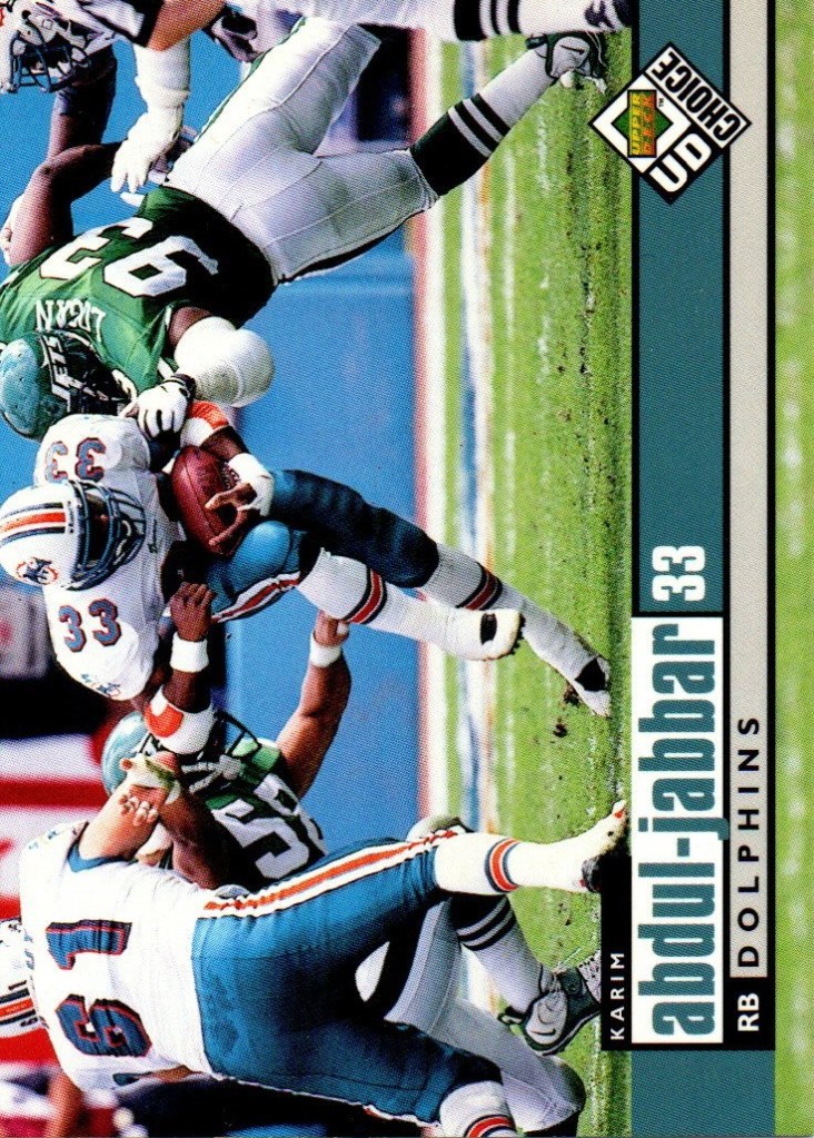 Running Backs K To place order Click Here. Karim Abdul-Jabbar KAJ 0001 Collectors Choice Update 1996 Rookie Collection Card U48 Team Dolphins $0.10 KAJ 0002 Collectors Choice 1997 Card 165 Team Dolphins $0.10 KAJ 0003 Pinnacle 1996 Rookie Card 167 Team Dolphins $0.15 KAJ 0004 Pinnacle Xpress 1997 Card 89 Team Dolphins $0.20 KAJ 0005 SkyBox Impact 1996 Impact Rookie Card 149 College UCLA $0.10 KAJ 0006 Topps 1997 Card 285 Team Dolphins $0.10 KAJ 0007 Topps Underclassmen 1997 Card U2 Team Dolphins $1.50 KAJ 0008 UD Choice 1998 Card 359 Team Dolphins $0.20 Keith Byars KB 0001 Action Packed All Madden Team 1994 Card 9 Team Dolphins $0.05 KB 0002 Bowman 1991 Card 398 Team Eagles $0.01 KB 0003 Finest 1995 Card 58 Team Dolphins $0.05 KB 0004 Fleer 1990 Card 80 Team Eagles $0.02 KB 0005 Fleer 1991 Card 325 Team Eagles $0.01 KB 0006 Fleer 1994 Card 270 Team Dolphins $0.01 KB 0007 Pacific 1995 NFL Ironman 10 Years Card 103 Team Dolphins $0.02 KB 0008 Pinnacle 1994 Card 135 Team Dolphins $0.02 KB 0009 Playoff Contenders 1994 Card 78 Team Dolphins $0.02 KB 0010 Power 1993 Card 41 Team Eagles $0.02 KB 0011 Pro Line Portraits 1991 Card 107 Team Eagles $0.02 KB 0012 Pro Line Live 1994 Card 212 Team Dolphins $0.01 KB 0013 Pro Set 1989 Card 313 Team Eagles $0.05 KB 0014 Pro Set 1990 Card 245 Team Eagles $0.02 KB 0015 Pro Set 1993 Card 240 Team Dolphins $0.01 KB 0016 Score 1995 Card 120 Team Dolphins $0.01 KB 0017 Select 1994 Card 69 Team Dolphins $0.02 KB 0018 SkyBox Impact 1992 Card 246 Team Eagles $0.01 KB 0019 SkyBox Impact Silver 1993 Card 245 Team Eagles $0.04 KB 0020 Stadium Club 1992 Card 325 Team Eagles $0.05 KB 0021 Ultra 1991 Card 229 Team Eagles $0.01 KB 0022 Ultra 1992 Card 306 Team Eagles $0.02 KB 0023 Ultra 1998 Card 235 Team Jets $0.10 KB 0024 Upper Deck 1991 Card 282 Team Eagles $0.01 KB 0025 Upper Deck 1993 Card 376 Signed By Dolphins $0.01 KB 0026 Upper Deck 1994 Card 256 Team Dolphins $0.02 KB 0027 Wild Card 1992 Running Wild Card 8 of 10 Team Eagles $0.05 Keith Henderson KH 0001 SkyBox Impact 1992 Card 273 Team 49ers $0.01 KH 0002 Topps 1992 Card 382 Team 49ers $0.04 Keith Jones KJ 0001 Fleer 1990 Card 379 Team Falcons $0.02 KJ 0002 Fleer 1991 Card 204 Team Falcons $0.01 KJ 0003 Pacific 1992 Card 340 Team Falcons $0.01 KJ 0004 Pro Line Portraits 1991 Card 177 Team Falcons $0.01 KJ 0005 Ultra 1991 Card 144 Team Falcons $0.01 Keith Woodside KW 0001 Fleer 1990 Card 182 Team Packers $0.02 KW 0002 Fleer 1991 Card 263 Team Packers $0.01 KW 0003 Pro Set 1990 Prospect Card 734 Team Packers $0.02 KW 0004 Ultra 1991 Card 180 Team Packers $0.01 Kelvin Bryant KB 0001 Topps 1988 Card 10 Team Washington $0.05 Kenneth Davis KD 0001 Absolute 1995 Card 158 Team Bills $0.02 KD 0002 Fleer 1994 Card 38 Team Bills $0.01 KD 0003 Pro Line live 1994 Card 244 Team Bills $0.01 KD 0004 Pro Set 1992 Card 93 Team Bills $0.01 KD 0005 Pro Set 1993 Card 48 Team Bills $0.01 KD 0006 SkyBox Impact 1993 Card 17 Team Bills $0.01 KD 0007 Stadium Club 1992 Card 32 Team Bills $0.05 KD 0008 Stadium Club 1994 Card 27 Team Bills $0.05 KD 0009 Topps 1992 Card 555 Team Bills $0.04 KD 0010 Topps 1994 Card 515 Team Bills $0.01 KD 0011 Upper Deck 1994 Card 213 Team Bills $0.02 Kenny Bynum KB 0001 UD Choice 1998 Card 410 Team Chargers $0.15 Kenny King KK 0001 Topps 1983 Card 303 Team Raiders $0.10 Kevin Mack KM 0001 Fleer 1991 Card 38 Team Browns $0.01 KM 0002 Fleer 1993 Card 444 Team Browns $0.01 KM 0003 Pro Set 1990 Card 473 Team Browns $0.02 KM 0004 SkyBox Impact 1993 Card 58 Team Browns $0.01 KM 0005 Stadium Club 1992 Card 20 Team Browns $0.05 KM 0006 Topps 1992 Card 160 Team Browns $0.04 KM 0007 Ultra 1991 Card 30 Team Browns $0.01 KM 0008 Ultra 1992 Card 73 Team Browns $0.02 KM 0009 Upper Deck 1991 Card 225 Team Browns $0.01 KM 0010 Wild Card 1992 Card 173 Team Browns $0.01 Kevin Turner KT 0001 Collectors Choice 1995 Card 194 Signed By Eagles $0.01 KT 0002 Collectors Choice 1997 Turf Champions Card TC9 Team Eagles $0.05 KT 0003 Score 1995 Card 199 Signed By Eagles $0.01 KT 0004 Score Red Siege 1995 Card 199 Signed By Eagles $0.05 Ki-Jana Carter KC 0001 Absolute 1995 Draft Picks Card 181 College Penn State $0.15 KC 0002 Action Packed 1995 Rookie Card 42 College Penn State $0.20 KC 0003 Action Packed Monday Night Football 1995 The Night Is Young Card 82 Team Bengals $0.05 KC 0004 Collectors Choice 1995 Rookie Class Card 1 College Penn State $0.05 KC 0005 Collectors Choice 1995 You Crash The Game Silver Card C17 College Penn State $0.25 KC 0006 Donruss 1996 Card 144 Team Bengals $0.05 KC 0007 Fleer 1996 Break Throughs Card 5 of 24 Team Bengals $0.25 KC 0008 Images Limited 1995 Card 82 Team Bengals $0.15 KC 0009 Leaf 1996 Card 4 Team Bengals $0.05 KC 0010 Pacific 1995 Card 432 College Penn State $0.10 KC 0011 Pinnacle 1996 Card 41 Team Bengals $0.05 KC 0012 Pinnacle Xpress 1997 Card 49 Team Bengals $0.05 KC 0013 Playoff Contenders 1995 Rookies Card 130 Team Bengals $0.15 KC 0014 Score 1995 Rookie Card 261 College Penn State $0.05 KC 0015 SkyBox Impact 1995 Rookie Card 169 College Penn State $0.05 KC 0016 SkyBox Impact 1996 Card 30 Team Bengals $0.05 KC 0017 SkyBox Premium 1995 Rookie Card 159 Team Bengals $0.15 KC 0018 SkyBox Premium 1995 Paydirt Card PD3 College Penn State $0.05 KC 0019 SP 1995 Premier Prospects Card 1 Team Bengals $0.75 KC 0020 SportFlix 1995 Rookie Card 119 Team Bengals $0.10 KC 0021 Topps 1995 Draft Pick Card 221 Team Bengals $0.10 KC 0022 Topps 1997 Card 17 Team Bengals $0.05 KC 0023 Ultra 1996 Card 27 Team Bengals $0.05 KC 0024 Classic NFL Draft 1995 Card 1 College Penn State $0.05 KC 0025 Classic NFL Draft 1995 Card 67 College Penn State $0.05 KC 0026 Classic NFL Draft 1995 Card 99 NFL Rookies Checklist #1 $0.01 Kimble Anders KA 0001 Bowman 1993 Card 57 Team Chiefs $0.25 KA 0002 Donruss 1996 Card 109 Team Chiefs $0.05 KA 0003 Fleer 1994 Card 217 Team Chiefs $0.02 KA 0004 Pinnacle 1996 Card 88 Team Chiefs $0.05 KA 0005 Playoff Trophy Contenders 1996 Card 38 Team Chiefs $0.05 KA 0006 Score 1995 Card 143 Team 