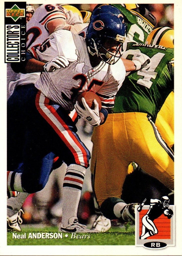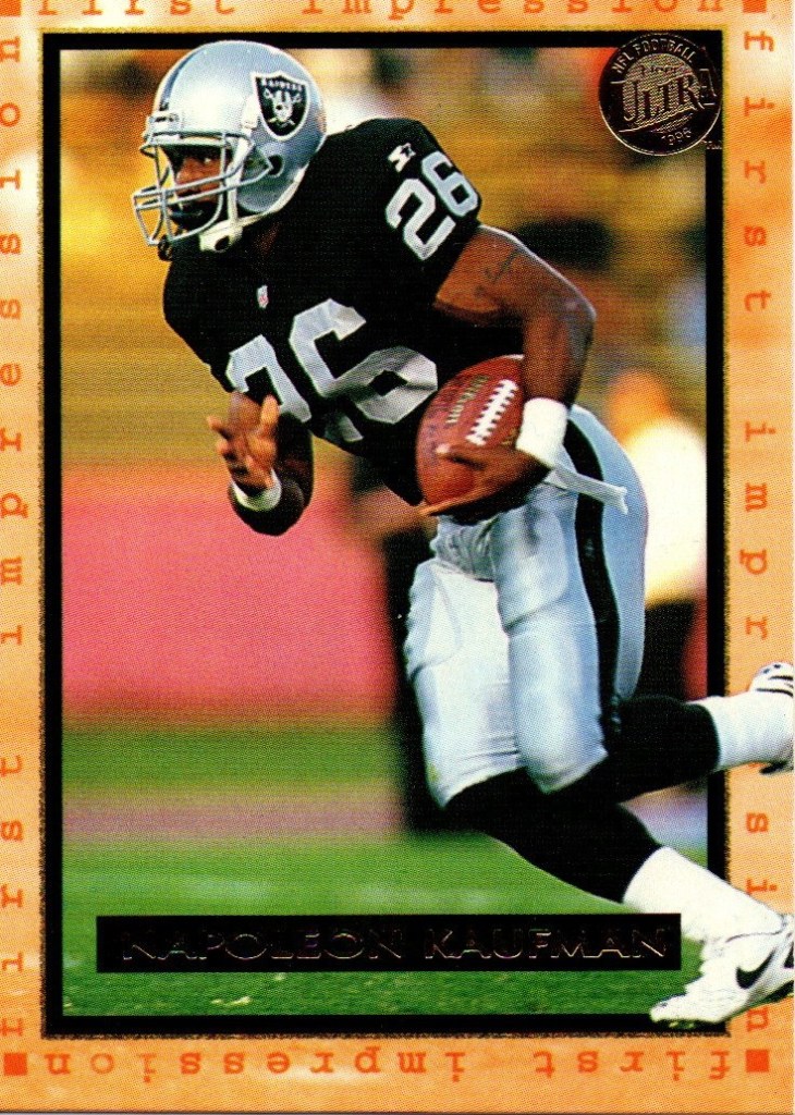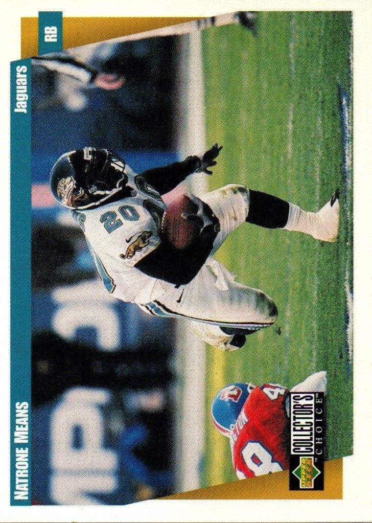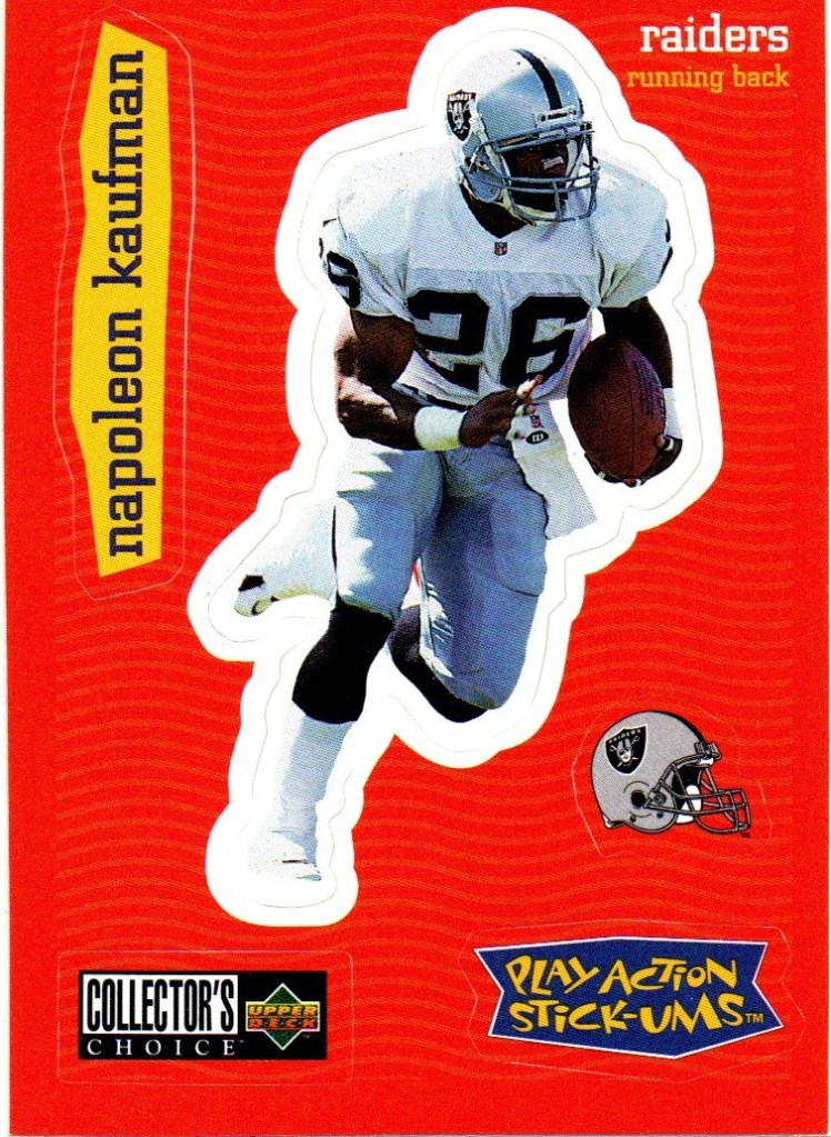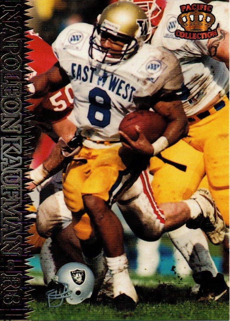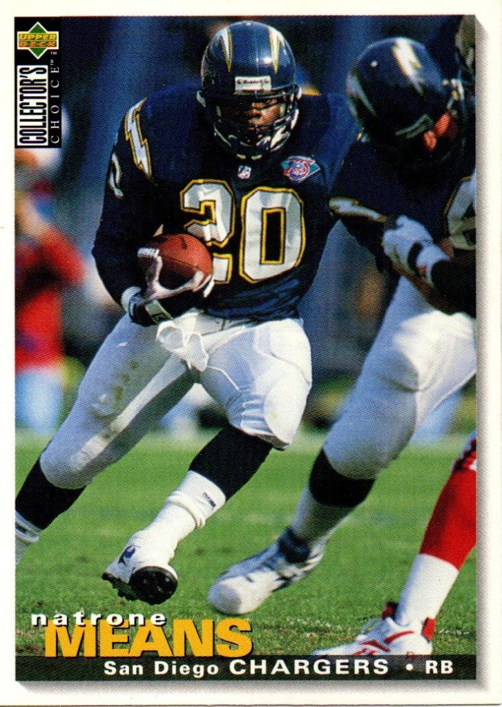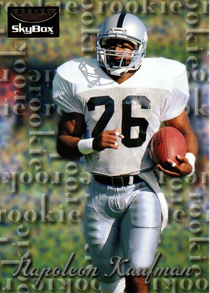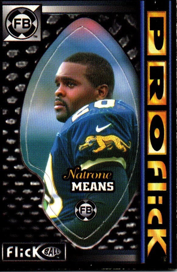 Running Backs N/O/P To place order Click Here. Napoleon Kaufman NK 0001 Absolute 1995 Draft Picks Card 192 College Washington $0.75 NK 0002 Action Packed Monday Night Football 1995 Card 91 Team Raiders $0.25 NK 0003 Collectors Choice 1995 Rookie Class Card 15 College Washington $0.25 NK 0004 Collectors Choice 1997 Names Of The Game Card 80 Team Raiders $0.02 NK 0005 Collectors Choice 1997 Stick Ums Card S28 Team Raiders $0.15 NK 0006 Donruss 1996 Card 67 Team Raiders $0.15 NK 0007 Collectors Edge 1995 Rookies Card 18 College Washington $1.00 NK 0008 Flick Ball 1997 Pro Flick Card 21 Team Raiders $0.25 NK 0009 Images Limited 1995 Card 93 Team Raiders $0.25 NK 0010 Pacific 1995 Card 205 College Washington $0.50 NK 0011 Pinnacle 1996 Card 104 Team Raiders $0.15 NK 0012 Pinnacle Xpress 1997 Card 79 Team Raiders $0.20 NK 0013 Playoff Contenders 1995 Rookies Card 142 Team Raiders $0.50 NK 0014 Playoff Trophy Contenders 1996 Rookie Card 26 Team Raiders $0.15 NK 0015 Score 1995 Rookie Card 271 College Washington $0.25 NK 0016 SkyBox Impact 1995 Rookie Card 182 College Washington $0.25 NK 0017 SkyBox Premium 1995 Rookie Card 172 Team raiders $0.50 NK 0018 SP 1995 Premier Prospects Card 17 Team Raiders $1.00 NK 0019 SportFlix 1995 Rookie Card 128 Team Raiders $0.50 NK 0020 Topps 1997 Card 123 Team Raiders $0.20 NK 0021 Ultra 1995 Rookie Card 166 Team Raiders $0.50 NK 0022 Ultra 1996 First Impression Card 184 Team Raiders $0.20 NK 0023 Zenith 1996 Rookie Card Z128 Team Raiders $0.20 NK 0024 Classic NFL Draft 1995 Card 18 College Washington $0.15 Natrone Means NM 0001 Absolute 1995 Card 48 Team Chargers $0.05 NM 0002 Action Packed 1995 Card 10 Team Chargers $0.05 NM 0003 Action Packed Monday Night Football 1995 Card 57 Team Chargers $0.05 NM 0004 Action Packed Monday Night Football 1995 Monday Night Classic Card 114 Team Chargers $0.05 NM 0005 Classic NFL Experience 1995 Card 96 Team Chargers $0.02 NM 0006 Classic NFL Experience 1996 Card 14 Team Chargers $0.02 NM 0007 Collectors Choice 1995 Card 175 Team Chargers $0.02 NM 0008 Collectors Choice 1995 Did You Know Card 41 Team Chargers $0.02 NM 0009 Collectors Choice Update 1996 Card U132 Team Jaguars $0.05 NM 0010 Collectors Choice 1997 Card 194 Team Jaguars $0.10 NM 0011 Donruss 1996 Card 182 Signed With Jaguars $0.05 NM 0012 Excalibur 1995 Card 65 Team Chargers $0.10 NM 0013 Finest 1995 Card 1 Team Chargers $0.25 NM 0014 Flick Ball 1997 Pro Flick Card 27 Team Jaguars $0.15 NM 0015 Flick Ball 1997 Pro Flick Foil Card 27 Team Jaguars $0.25 NM 0016 Images 1994 Card 107 Team Chargers $0.25 NM 0017 Images Limited 1995 Card 21 Team Chargers $0.05 NM 0018 Pacific 1995 Card 77 Team Chargers $0.05 NM 0019 Pinnacle 1994 Card 134 Team Chargers $0.15 NM 0020 Pinnacle 1996 Card 49 Signed With Jaguars $0.05 NM 0021 Pinnacle Xpress 1997 Card 30 Team Jaguars $0.10 NM 0022 Playoff Contenders 1994 Card 64 Team Chargers $0.15 NM 0023 Playoff Contenders 1995 Card 31 Team Chargers $0.05 NM 0024 Playoff Trophy Contenders 1996 Card 39 Team Chargers $0.05 NM 0025 Pro Line Live 1994 Card 319 Team Chargers $0.05 NM 0026 Pro Set 1993 Card 380 Team Chargers $0.05 NM 0027 Score 1995 Card 76 Team Chargers $0.02 NM 0028 Select 1994 Card 184 Team Chargers $0.15 NM 0029 SkyBox Impact Rookie 1993 Card 399 College North Carolina $0.05 NM 0030 SkyBox Impact 1995 Card 126 Team Chargers $0.02 NM 0031 SkyBox Impact 1996 Card 125 Team Chargers $0.05 NM 0032 SkyBox Premium 1994 Card 134 Team Chargers $0.10 NM 0033 SkyBox Premium 1995 Card 115 Team Chargers $0.05 NM 0034 Means-Morris SkyBox Premium 1995 Mirror Image Card 155 $0.02 NM 0035 SP 1995 Card 194 Team Chargers $0.15 NM 0036 Sportflics 1994 Card 73 Team Chargers $0.10 NM 0037 SportFlix 1995 Card 56 Team Chargers $0.05 NM 0038 Stadium Club 1994 Card 40 Team Chargers $0.15 NM 0039 Stadium Club 1994-95 Card 624 Team Chargers $0.15 NM 0040 Stadium Club 1995 Power Surge Card P2 Team Chargers $0.25 NM 0041 Topps 1993 Draft Pick Card 243 College North Carolina $0.10 NM 0042 Topps 1994 Card 450 Front Of Card (OLB) Team Chargers $0.05 NM 0043 Topps 1995 (1000 Yard Club) Card 6 Team Chargers $0.05 NM 0044 Topps 1997 Card 335 Jaguars $0.10 NM 0045 Ultra 1994 (2nd Year Standout) Card 10 of 15 Team Chargers $0.25 NM 0046 Ultra 1995 Card 290 Team Chargers $0.05 NM 0047 Ultra 1996 Card 139 Team Chargers $0.05 NM 0048 Zenith 1996 Card Z34 Team Chargers $0.05 NM 0049 Classic 4 Sport 1993 Card 118 College North Carolina $0.05 Neal Anderson NA 0001 Action Packed 1992 Card 28 Team Bears $0.05 NA 0002 Collectors Choice 1994 Card 115 Team Bears $0.01 NA 0003 Fleer 1990 Card 288 Team Bears $0.04 NA 0004 Fleer 1991 Card 212 Team Bears $0.02 NA 0005 Fleer 1994 Card 54 Team Bears $0.01 NA 0006 Pinnacle 1994 Card 13 Team Bears $0.02 NA 0007 Power 1993 Card 135 Team Bears $0.01 NA 0008 Pro Line Portraits 1991 Card 3 Team Bears $0.02 NA 0009 Pro Line Live 1994 Card 308 Team Bears $0.01 NA 0010 Pro Set 1990 Card 49 Team Bears $0.04 NA 0011 Pro Set 1990 Pro Bowl Card 380 Team Bears $0.04 NA 0012 Pro Set 1992 Card 118 Team Bears $0.01 NA 0013 Pro Set 1993 Card 75 Team Bears $0.01 NA 0014 SkyBox Impact 1993 Card 31 Team Bears $0.01 NA 0015 Sportflics 1994 Card 60 Team Bears $0.02 NA 0016 Stadium Club 1993 Card 5 Team Bears $0.05 NA 0017 Topps 1992 Card 153 Team Bears $0.04 NA 0018 Ultra 1991 Card 151 Team Bears $0.02 NA 0019 Ultra 1992 Card 34 Team Bears $0.02 NA 0020 Upper Deck 1993 Card 135 Team Bears $0.01 NA 0021 Wild Card 1992 Running Wild Card 2 of 40 Team Bears $0.05 Nick Bell NB 0001 Fleer 1991 Card 420 College Iowa $0.01 NB 0002 Pro Line Portraits 1991 Card 9 Team Raiders $0.01 NB 0003 Pro Set 1992 Card 209 Team Raiders $0.01 NB 0004 Pro Set 1993 Card 211 Team Raiders $0.01 NB 0005 SkyBox Impact 1993 Card 151 Team raiders $0.01 NB 0006 Stadium Club 1992 Card 181 Team Raiders $0.05 NB 0007 Ultra 1991 Card 279 College Iowa $0.01 NB 0008 Upper Deck 1993 Card 213 Team Raiders $0.01 OJ Simpson OJS 0001 Pro Line Portraits 1991 Card 28 Team Bills $0.05 OJS 0002