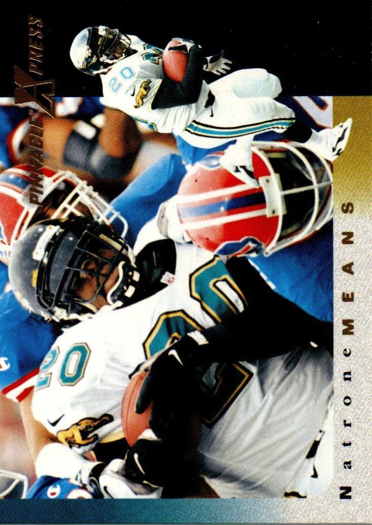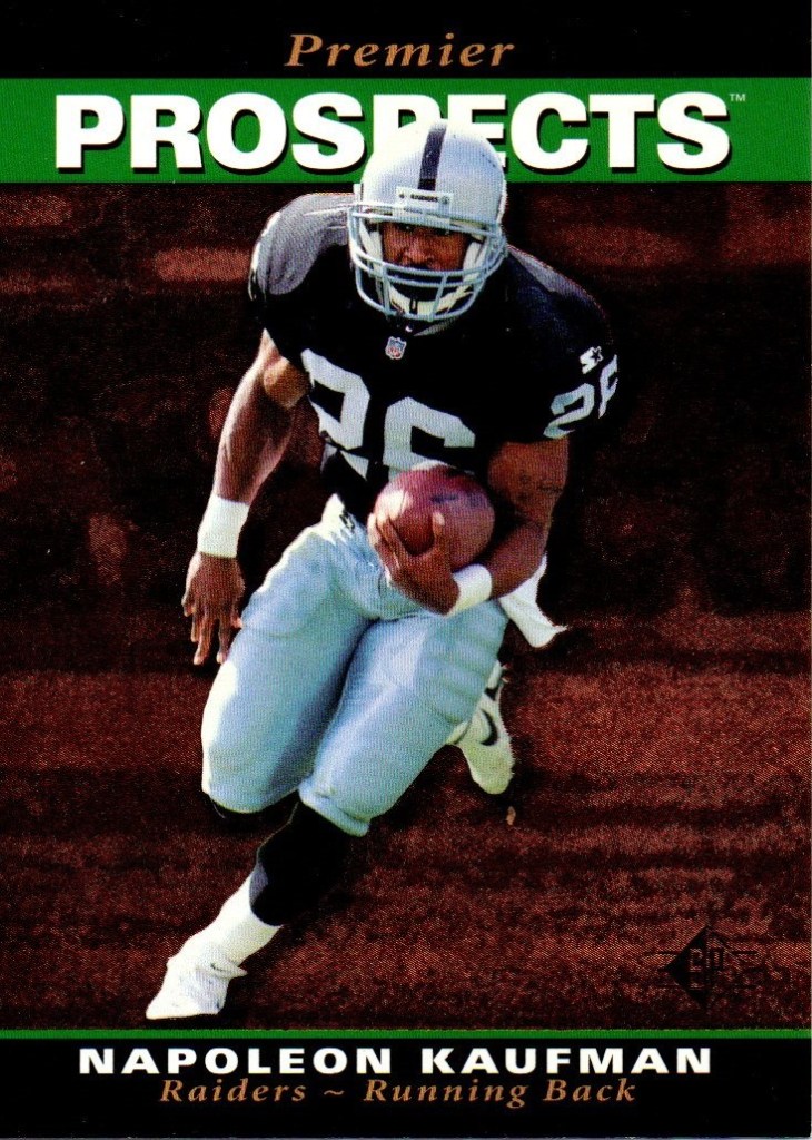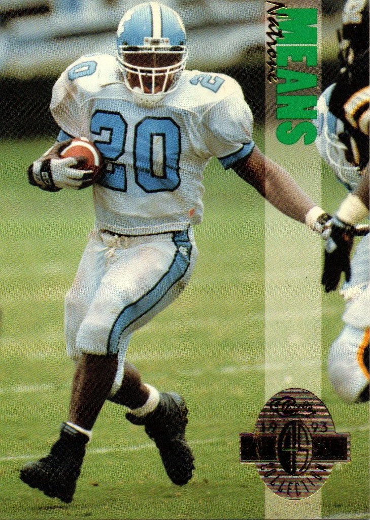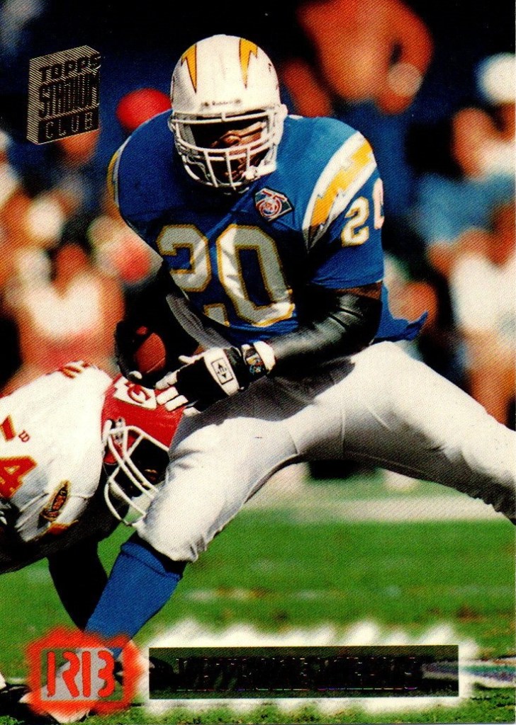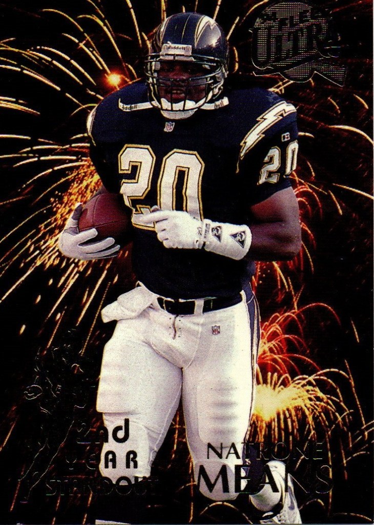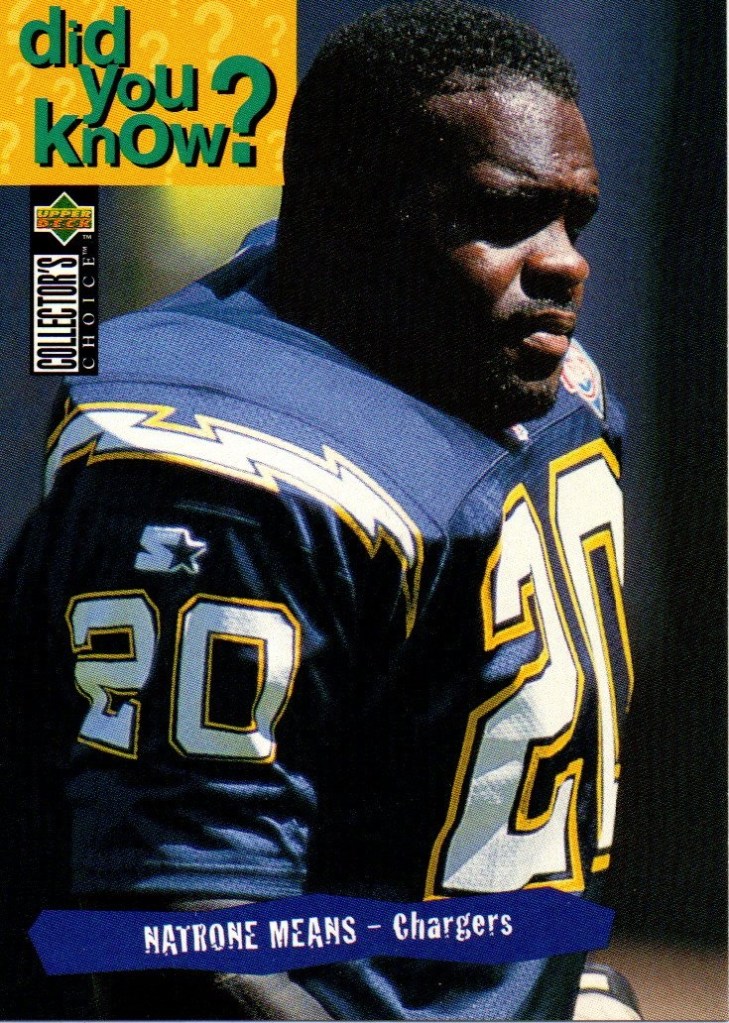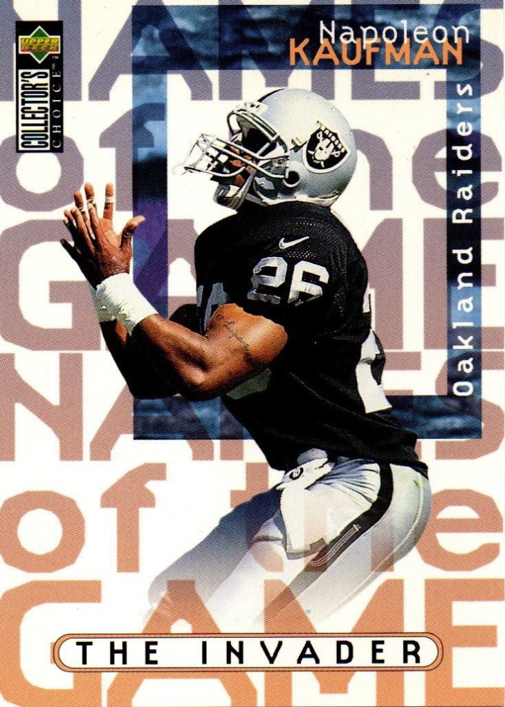 Running Backs N/O/P To place order Click Here. Napoleon Kaufman NK 0001 Absolute 1995 Draft Picks Card 192 College Washington $0.75 NK 0002 Action Packed Monday Night Football 1995 Card 91 Team Raiders $0.25 NK 0003 Collectors Choice 1995 Rookie Class Card 15 College Washington $0.25 NK 0004 Collectors Choice 1997 Names Of The Game Card 80 Team Raiders $0.02 NK 0005 Collectors Choice 1997 Stick Ums Card S28 Team Raiders $0.15 NK 0006 Donruss 1996 Card 67 Team Raiders $0.15 NK 0007 Collectors Edge 1995 Rookies Card 18 College Washington $1.00 NK 0008 Flick Ball 1997 Pro Flick Card 21 Team Raiders $0.25 NK 0009 Images Limited 1995 Card 93 Team Raiders $0.25 NK 0010 Pacific 1995 Card 205 College Washington $0.50 NK 0011 Pinnacle 1996 Card 104 Team Raiders $0.15 NK 0012 Pinnacle Xpress 1997 Card 79 Team Raiders $0.20 NK 0013 Playoff Contenders 1995 Rookies Card 142 Team Raiders $0.50 NK 0014 Playoff Trophy Contenders 1996 Rookie Card 26 Team Raiders $0.15 NK 0015 Score 1995 Rookie Card 271 College Washington $0.25 NK 0016 SkyBox Impact 1995 Rookie Card 182 College Washington $0.25 NK 0017 SkyBox Premium 1995 Rookie Card 172 Team raiders $0.50 NK 0018 SP 1995 Premier Prospects Card 17 Team Raiders $1.00 NK 0019 SportFlix 1995 Rookie Card 128 Team Raiders $0.50 NK 0020 Topps 1997 Card 123 Team Raiders $0.20 NK 0021 Ultra 1995 Rookie Card 166 Team Raiders $0.50 NK 0022 Ultra 1996 First Impression Card 184 Team Raiders $0.20 NK 0023 Zenith 1996 Rookie Card Z128 Team Raiders $0.20 NK 0024 Classic NFL Draft 1995 Card 18 College Washington $0.15 Natrone Means NM 0001 Absolute 1995 Card 48 Team Chargers $0.05 NM 0002 Action Packed 1995 Card 10 Team Chargers $0.05 NM 0003 Action Packed Monday Night Football 1995 Card 57 Team Chargers $0.05 NM 0004 Action Packed Monday Night Football 1995 Monday Night Classic Card 114 Team Chargers $0.05 NM 0005 Classic NFL Experience 1995 Card 96 Team Chargers $0.02 NM 0006 Classic NFL Experience 1996 Card 14 Team Chargers $0.02 NM 0007 Collectors Choice 1995 Card 175 Team Chargers $0.02 NM 0008 Collectors Choice 1995 Did You Know Card 41 Team Chargers $0.02 NM 0009 Collectors Choice Update 1996 Card U132 Team Jaguars $0.05 NM 0010 Collectors Choice 1997 Card 194 Team Jaguars $0.10 NM 0011 Donruss 1996 Card 182 Signed With Jaguars $0.05 NM 0012 Excalibur 1995 Card 65 Team Chargers $0.10 NM 0013 Finest 1995 Card 1 Team Chargers $0.25 NM 0014 Flick Ball 1997 Pro Flick Card 27 Team Jaguars $0.15 NM 0015 Flick Ball 1997 Pro Flick Foil Card 27 Team Jaguars $0.25 NM 0016 Images 1994 Card 107 Team Chargers $0.25 NM 0017 Images Limited 1995 Card 21 Team Chargers $0.05 NM 0018 Pacific 1995 Card 77 Team Chargers $0.05 NM 0019 Pinnacle 1994 Card 134 Team Chargers $0.15 NM 0020 Pinnacle 1996 Card 49 Signed With Jaguars $0.05 NM 0021 Pinnacle Xpress 1997 Card 30 Team Jaguars $0.10 NM 0022 Playoff Contenders 1994 Card 64 Team Chargers $0.15 NM 0023 Playoff Contenders 1995 Card 31 Team Chargers $0.05 NM 0024 Playoff Trophy Contenders 1996 Card 39 Team Chargers $0.05 NM 0025 Pro Line Live 1994 Card 319 Team Chargers $0.05 NM 0026 Pro Set 1993 Card 380 Team Chargers $0.05 NM 0027 Score 1995 Card 76 Team Chargers $0.02 NM 0028 Select 1994 Card 184 Team Chargers $0.15 NM 0029 SkyBox Impact Rookie 1993 Card 399 College North Carolina $0.05 NM 0030 SkyBox Impact 1995 Card 126 Team Chargers $0.02 NM 0031 SkyBox Impact 1996 Card 125 Team Chargers $0.05 NM 0032 SkyBox Premium 1994 Card 134 Team Chargers $0.10 NM 0033 SkyBox Premium 1995 Card 115 Team Chargers $0.05 NM 0034 Means-Morris SkyBox Premium 1995 Mirror Image Card 155 $0.02 NM 0035 SP 1995 Card 194 Team Chargers $0.15 NM 0036 Sportflics 1994 Card 73 Team Chargers $0.10 NM 0037 SportFlix 1995 Card 56 Team Chargers $0.05 NM 0038 Stadium Club 1994 Card 40 Team Chargers $0.15 NM 0039 Stadium Club 1994-95 Card 624 Team Chargers $0.15 NM 0040 Stadium Club 1995 Power Surge Card P2 Team Chargers $0.25 NM 0041 Topps 1993 Draft Pick Card 243 College North Carolina $0.10 NM 0042 Topps 1994 Card 450 Front Of Card (OLB) Team Chargers $0.05 NM 0043 Topps 1995 (1000 Yard Club) Card 6 Team Chargers $0.05 NM 0044 Topps 1997 Card 335 Jaguars $0.10 NM 0045 Ultra 1994 (2nd Year Standout) Card 10 of 15 Team Chargers $0.25 NM 0046 Ultra 1995 Card 290 Team Chargers $0.05 NM 0047 Ultra 1996 Card 139 Team Chargers $0.05 NM 0048 Zenith 1996 Card Z34 Team Chargers $0.05 NM 0049 Classic 4 Sport 1993 Card 118 College North Carolina $0.05 Neal Anderson NA 0001 Action Packed 1992 Card 28 Team Bears $0.05 NA 0002 Collectors Choice 1994 Card 115 Team Bears $0.01 NA 0003 Fleer 1990 Card 288 Team Bears $0.04 NA 0004 Fleer 1991 Card 212 Team Bears $0.02 NA 0005 Fleer 1994 Card 54 Team Bears $0.01 NA 0006 Pinnacle 1994 Card 13 Team Bears $0.02 NA 0007 Power 1993 Card 135 Team Bears $0.01 NA 0008 Pro Line Portraits 1991 Card 3 Team Bears $0.02 NA 0009 Pro Line Live 1994 Card 308 Team Bears $0.01 NA 0010 Pro Set 1990 Card 49 Team Bears $0.04 NA 0011 Pro Set 1990 Pro Bowl Card 380 Team Bears $0.04 NA 0012 Pro Set 1992 Card 118 Team Bears $0.01 NA 0013 Pro Set 1993 Card 75 Team Bears $0.01 NA 0014 SkyBox Impact 1993 Card 31 Team Bears $0.01 NA 0015 Sportflics 1994 Card 60 Team Bears $0.02 NA 0016 Stadium Club 1993 Card 5 Team Bears $0.05 NA 0017 Topps 1992 Card 153 Team Bears $0.04 NA 0018 Ultra 1991 Card 151 Team Bears $0.02 NA 0019 Ultra 1992 Card 34 Team Bears $0.02 NA 0020 Upper Deck 1993 Card 135 Team Bears $0.01 NA 0021 Wild Card 1992 Running Wild Card 2 of 40 Team Bears $0.05 Nick Bell NB 0001 Fleer 1991 Card 420 College Iowa $0.01 NB 0002 Pro Line Portraits 1991 Card 9 Team Raiders $0.01 NB 0003 Pro Set 1992 Card 209 Team Raiders $0.01 NB 0004 Pro Set 1993 Card 211 Team Raiders $0.01 NB 0005 SkyBox Impact 1993 Card 151 Team raiders $0.01 NB 0006 Stadium Club 1992 Card 181 Team Raiders $0.05 NB 0007 Ultra 1991 Card 279 College Iowa $0.01 NB 0008 Upper Deck 1993 Card 213 Team Raiders $0.01 OJ Simpson OJS 0001 Pro Line Portraits 1991 Card 28 Team Bills $0.05 OJS 0002