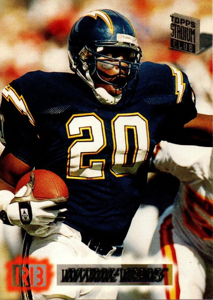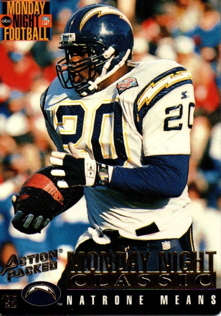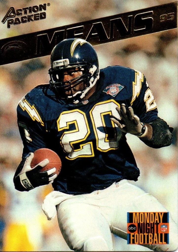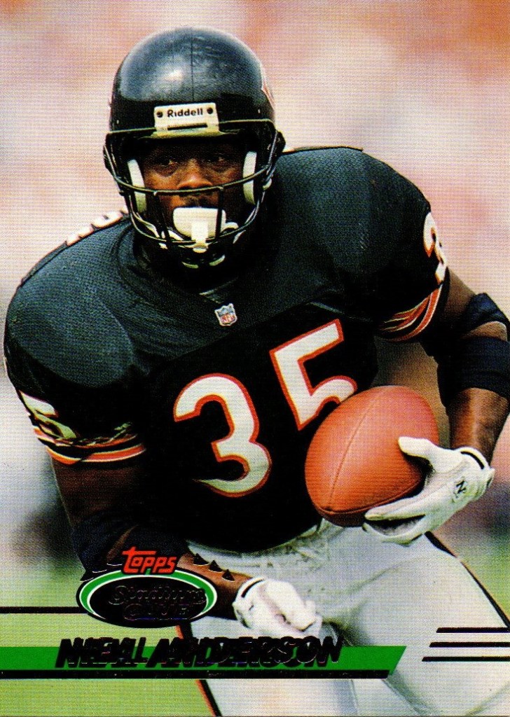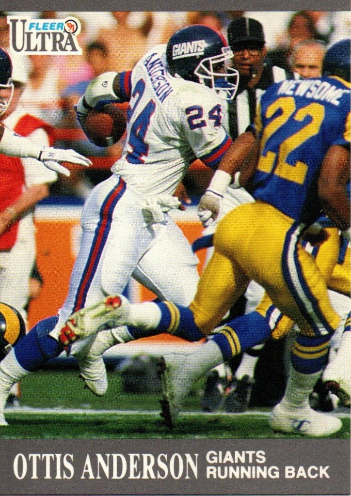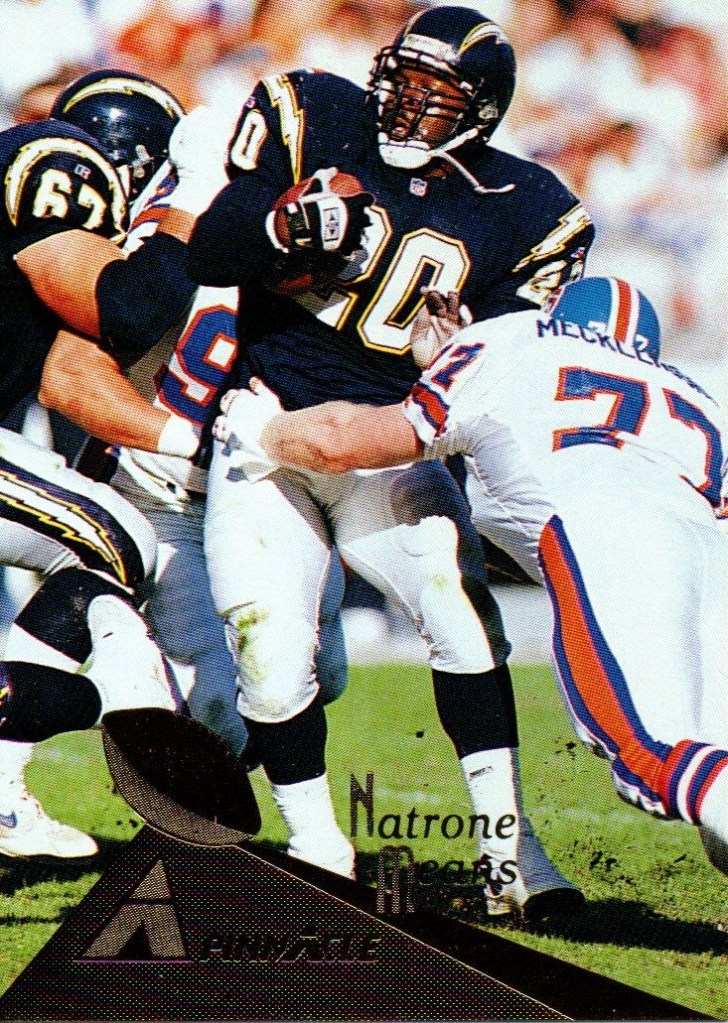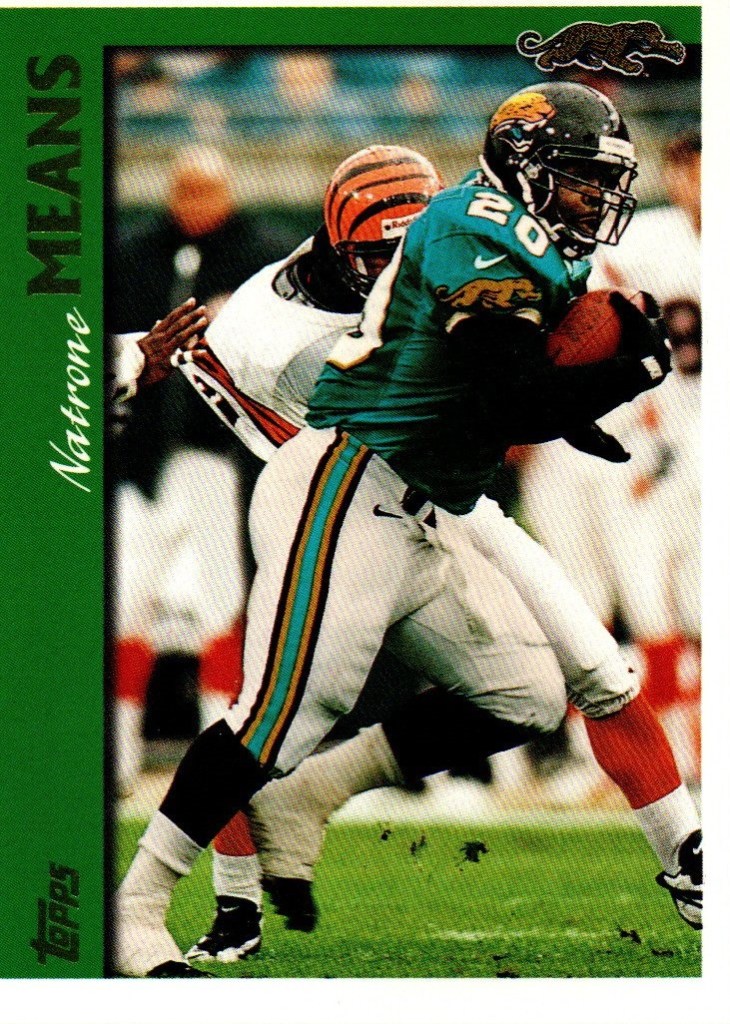Running Backs N/O/P To place order Click Here. Napoleon Kaufman NK 0001 Absolute 1995 Draft Picks Card 192 College Washington $0.75 NK 0002 Action Packed Monday Night Football 1995 Card 91 Team Raiders $0.25 NK 0003 Collectors Choice 1995 Rookie Class Card 15 College Washington $0.25 NK 0004 Collectors Choice 1997 Names Of The Game Card 80 Team Raiders $0.02 NK 0005 Collectors Choice 1997 Stick Ums Card S28 Team Raiders $0.15 NK 0006 Donruss 1996 Card 67 Team Raiders $0.15 NK 0007 Collectors Edge 1995 Rookies Card 18 College Washington $1.00 NK 0008 Flick Ball 1997 Pro Flick Card 21 Team Raiders $0.25 NK 0009 Images Limited 1995 Card 93 Team Raiders $0.25 NK 0010 Pacific 1995 Card 205 College Washington $0.50 NK 0011 Pinnacle 1996 Card 104 Team Raiders $0.15 NK 0012 Pinnacle Xpress 1997 Card 79 Team Raiders $0.20 NK 0013 Playoff Contenders 1995 Rookies Card 142 Team Raiders $0.50 NK 0014 Playoff Trophy Contenders 1996 Rookie Card 26 Team Raiders $0.15 NK 0015 Score 1995 Rookie Card 271 College Washington $0.25 NK 0016 SkyBox Impact 1995 Rookie Card 182 College Washington $0.25 NK 0017 SkyBox Premium 1995 Rookie Card 172 Team raiders $0.50 NK 0018 SP 1995 Premier Prospects Card 17 Team Raiders $1.00 NK 0019 SportFlix 1995 Rookie Card 128 Team Raiders $0.50 NK 0020 Topps 1997 Card 123 Team Raiders $0.20 NK 0021 Ultra 1995 Rookie Card 166 Team Raiders $0.50 NK 0022 Ultra 1996 First Impression Card 184 Team Raiders $0.20 NK 0023 Zenith 1996 Rookie Card Z128 Team Raiders $0.20 NK 0024 Classic NFL Draft 1995 Card 18 College Washington $0.15 Natrone Means NM 0001 Absolute 1995 Card 48 Team Chargers $0.05 NM 0002 Action Packed 1995 Card 10 Team Chargers $0.05 NM 0003 Action Packed Monday Night Football 1995 Card 57 Team Chargers $0.05 NM 0004 Action Packed Monday Night Football 1995 Monday Night Classic Card 114 Team Chargers $0.05 NM 0005 Classic NFL Experience 1995 Card 96 Team Chargers $0.02 NM 0006 Classic NFL Experience 1996 Card 14 Team Chargers $0.02 NM 0007 Collectors Choice 1995 Card 175 Team Chargers $0.02 NM 0008 Collectors Choice 1995 Did You Know Card 41 Team Chargers $0.02 NM 0009 Collectors Choice Update 1996 Card U132 Team Jaguars $0.05 NM 0010 Collectors Choice 1997 Card 194 Team Jaguars $0.10 NM 0011 Donruss 1996 Card 182 Signed With Jaguars $0.05 NM 0012 Excalibur 1995 Card 65 Team Chargers $0.10 NM 0013 Finest 1995 Card 1 Team Chargers $0.25 NM 0014 Flick Ball 1997 Pro Flick Card 27 Team Jaguars $0.15 NM 0015 Flick Ball 1997 Pro Flick Foil Card 27 Team Jaguars $0.25 NM 0016 Images 1994 Card 107 Team Chargers $0.25 NM 0017 Images Limited 1995 Card 21 Team Chargers $0.05 NM 0018 Pacific 1995 Card 77 Team Chargers $0.05 NM 0019 Pinnacle 1994 Card 134 Team Chargers $0.15 NM 0020 Pinnacle 1996 Card 49 Signed With Jaguars $0.05 NM 0021 Pinnacle Xpress 1997 Card 30 Team Jaguars $0.10 NM 0022 Playoff Contenders 1994 Card 64 Team Chargers $0.15 NM 0023 Playoff Contenders 1995 Card 31 Team Chargers $0.05 NM 0024 Playoff Trophy Contenders 1996 Card 39 Team Chargers $0.05 NM 0025 Pro Line Live 1994 Card 319 Team Chargers $0.05 NM 0026 Pro Set 1993 Card 380 Team Chargers $0.05 NM 0027 Score 1995 Card 76 Team Chargers $0.02 NM 0028 Select 1994 Card 184 Team Chargers $0.15 NM 0029 SkyBox Impact Rookie 1993 Card 399 College North Carolina $0.05 NM 0030 SkyBox Impact 1995 Card 126 Team Chargers $0.02 NM 0031 SkyBox Impact 1996 Card 125 Team Chargers $0.05 NM 0032 SkyBox Premium 1994 Card 134 Team Chargers $0.10 NM 0033 SkyBox Premium 1995 Card 115 Team Chargers $0.05 NM 0034 Means-Morris SkyBox Premium 1995 Mirror Image Card 155 $0.02 NM 0035 SP 1995 Card 194 Team Chargers $0.15 NM 0036 Sportflics 1994 Card 73 Team Chargers $0.10 NM 0037 SportFlix 1995 Card 56 Team Chargers $0.05 NM 0038 Stadium Club 1994 Card 40 Team Chargers $0.15 NM 0039 Stadium Club 1994-95 Card 624 Team Chargers $0.15 NM 0040 Stadium Club 1995 Power Surge Card P2 Team Chargers $0.25 NM 0041 Topps 1993 Draft Pick Card 243 College North Carolina $0.10 NM 0042 Topps 1994 Card 450 Front Of Card (OLB) Team Chargers $0.05 NM 0043 Topps 1995 (1000 Yard Club) Card 6 Team Chargers $0.05 NM 0044 Topps 1997 Card 335 Jaguars $0.10 NM 0045 Ultra 1994 (2nd Year Standout) Card 10 of 15 Team Chargers $0.25 NM 0046 Ultra 1995 Card 290 Team Chargers $0.05 NM 0047 Ultra 1996 Card 139 Team Chargers $0.05 NM 0048 Zenith 1996 Card Z34 Team Chargers $0.05 NM 0049 Classic 4 Sport 1993 Card 118 College North Carolina $0.05 Neal Anderson NA 0001 Action Packed 1992 Card 28 Team Bears $0.05 NA 0002 Collectors Choice 1994 Card 115 Team Bears $0.01 NA 0003 Fleer 1990 Card 288 Team Bears $0.04 NA 0004 Fleer 1991 Card 212 Team Bears $0.02 NA 0005 Fleer 1994 Card 54 Team Bears $0.01 NA 0006 Pinnacle 1994 Card 13 Team Bears $0.02 NA 0007 Power 1993 Card 135 Team Bears $0.01 NA 0008 Pro Line Portraits 1991 Card 3 Team Bears $0.02 NA 0009 Pro Line Live 1994 Card 308 Team Bears $0.01 NA 0010 Pro Set 1990 Card 49 Team Bears $0.04 NA 0011 Pro Set 1990 Pro Bowl Card 380 Team Bears $0.04 NA 0012 Pro Set 1992 Card 118 Team Bears $0.01 NA 0013 Pro Set 1993 Card 75 Team Bears $0.01 NA 0014 SkyBox Impact 1993 Card 31 Team Bears $0.01 NA 0015 Sportflics 1994 Card 60 Team Bears $0.02 NA 0016 Stadium Club 1993 Card 5 Team Bears $0.05 NA 0017 Topps 1992 Card 153 Team Bears $0.04 NA 0018 Ultra 1991 Card 151 Team Bears $0.02 NA 0019 Ultra 1992 Card 34 Team Bears $0.02 NA 0020 Upper Deck 1993 Card 135 Team Bears $0.01 NA 0021 Wild Card 1992 Running Wild Card 2 of 40 Team Bears $0.05 Nick Bell NB 0001 Fleer 1991 Card 420 College Iowa $0.01 NB 0002 Pro Line Portraits 1991 Card 9 Team Raiders $0.01 NB 0003 Pro Set 1992 Card 209 Team Raiders $0.01 NB 0004 Pro Set 1993 Card 211 Team Raiders $0.01 NB 0005 SkyBox Impact 1993 Card 151 Team raiders $0.01 NB 0006 Stadium Club 1992 Card 181 Team Raiders $0.05 NB 0007 Ultra 1991 Card 279 College Iowa $0.01 NB 0008 Upper Deck 1993 Card 213 Team Raiders $0.01 OJ Simpson OJS 0001 Pro Line Portraits 1991 Card 28 Team Bills $0.05 OJS 0002